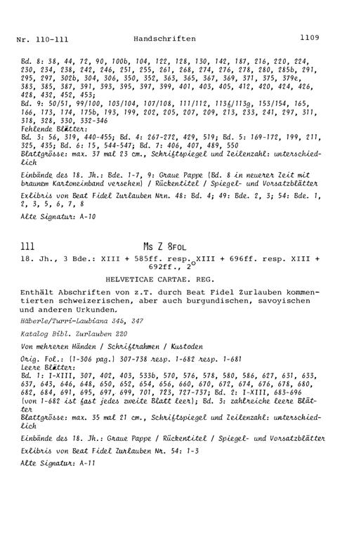 20. Bibliograohie der Arbeiten von Beat Fidel Zurlauben