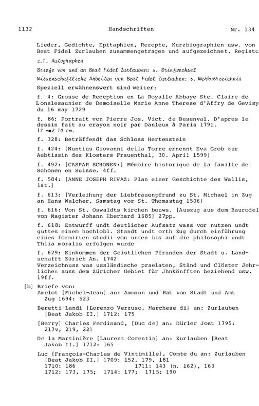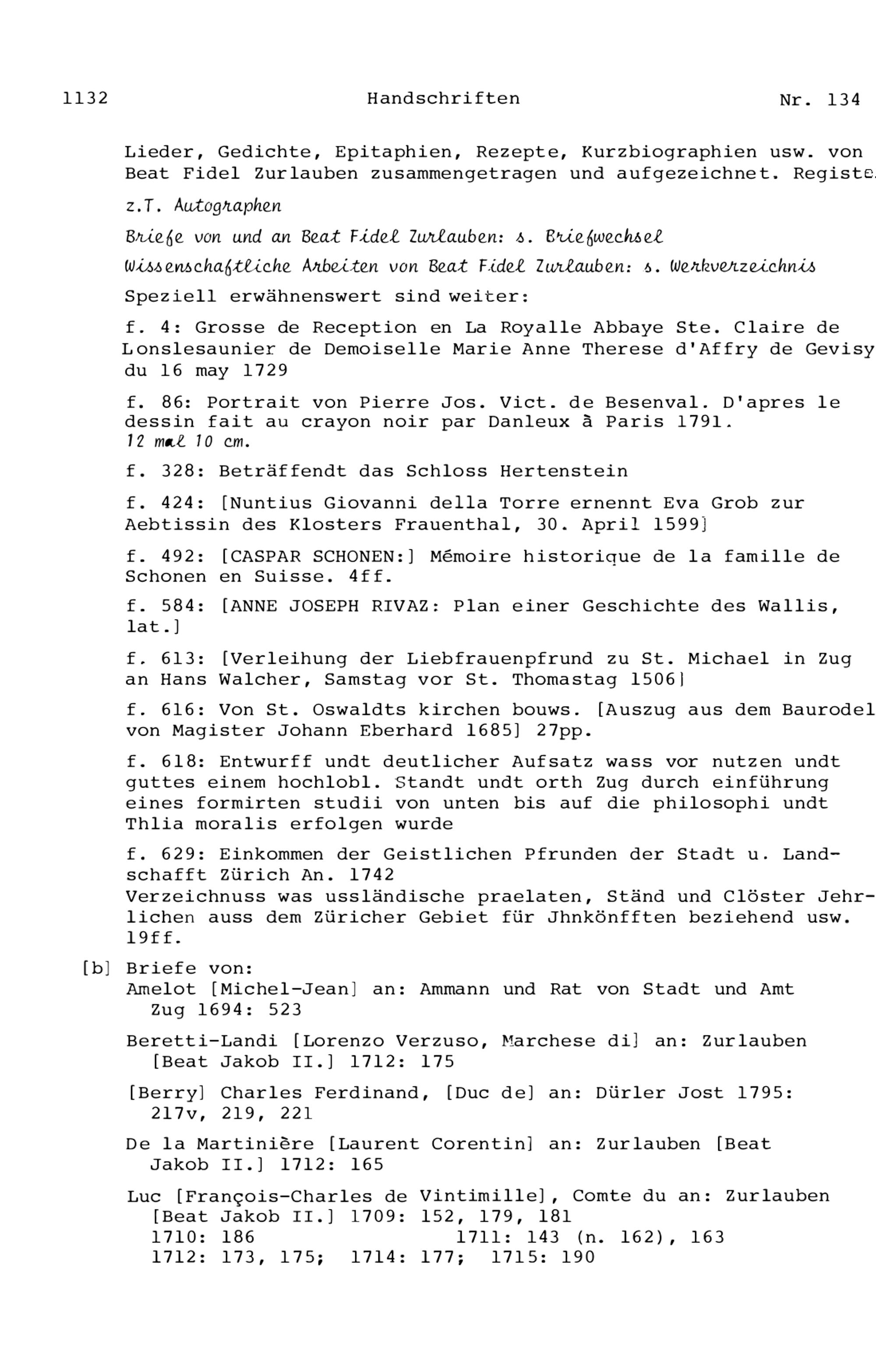 21. Register zu den Arbeiten von Beat Fidel Zurlauben