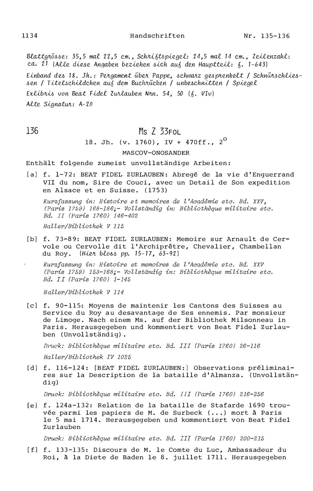 20. Bibliograohie der Arbeiten von Beat Fidel Zurlauben