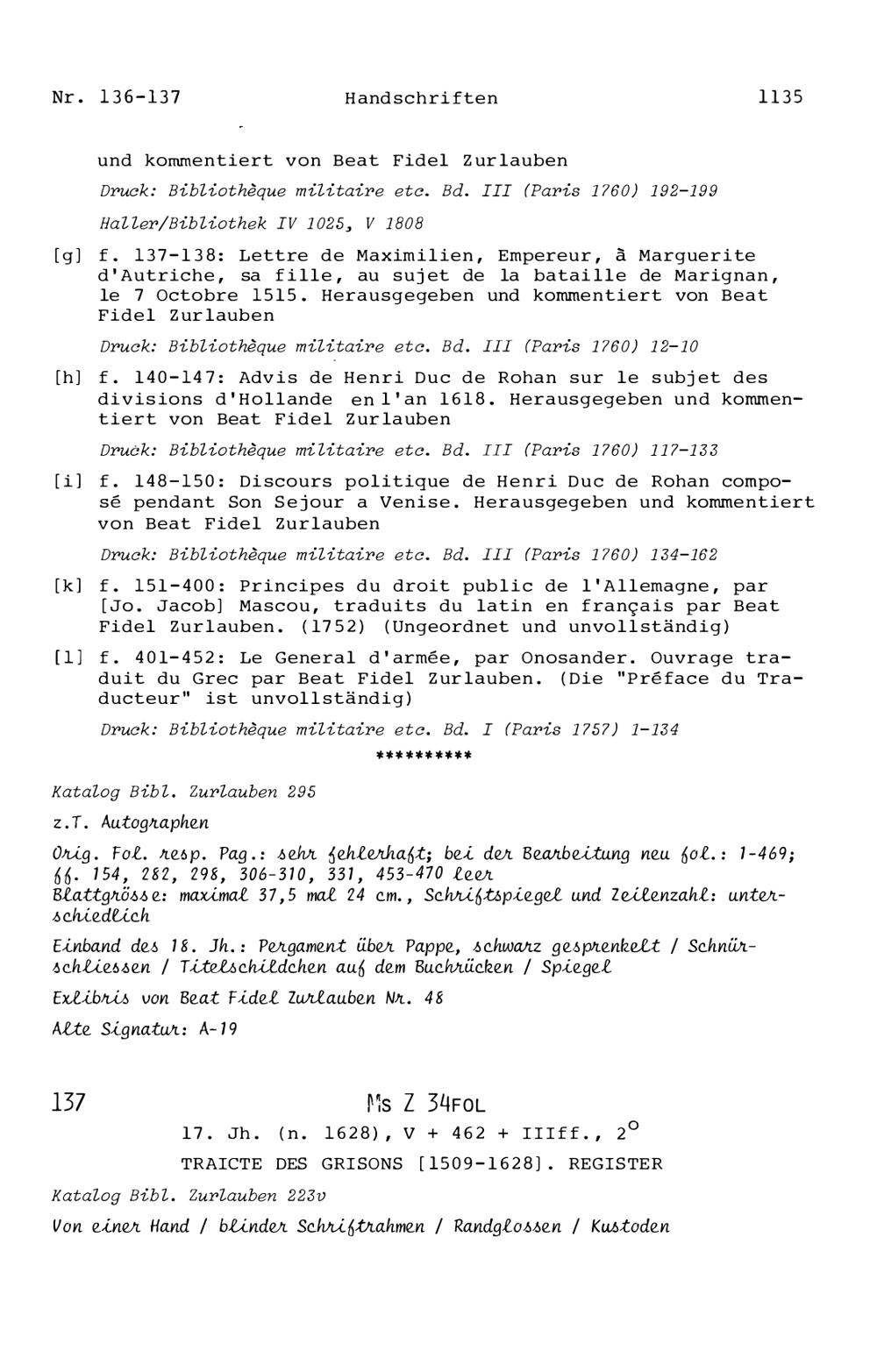 20. Bibliograohie der Arbeiten von Beat Fidel Zurlauben