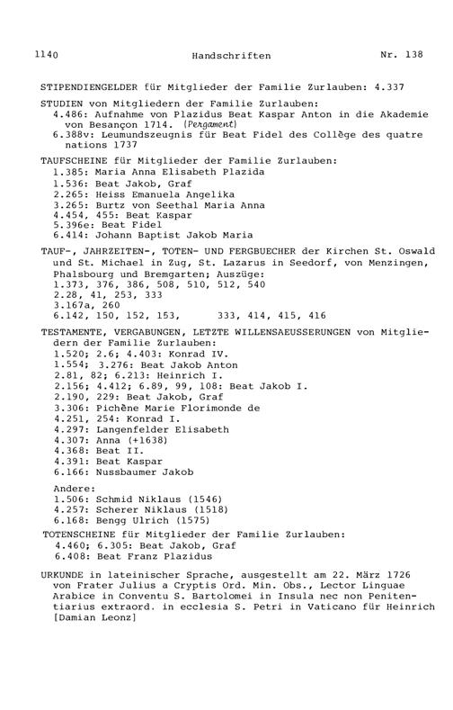 12. Bio-Bibliographie der Mitglieder der Familie Zurlauben