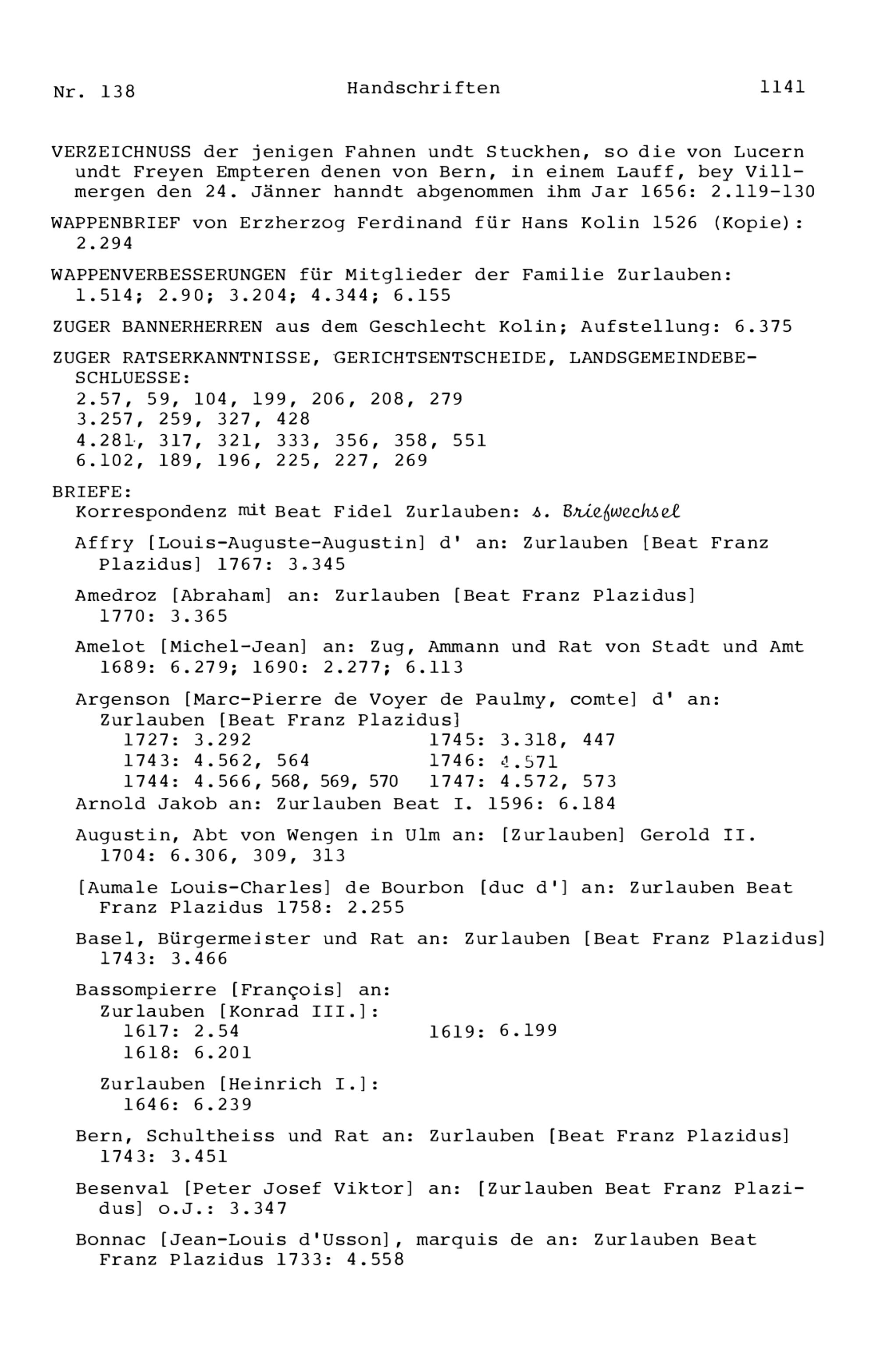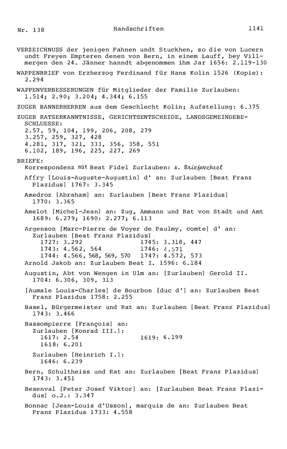 21. Register zu den Arbeiten von Beat Fidel Zurlauben