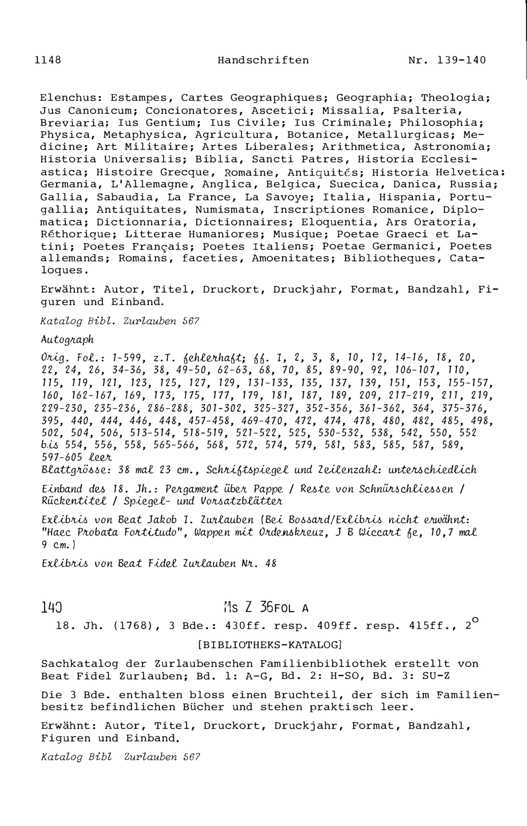 15. Die Handschriften in der Zurlaubiana