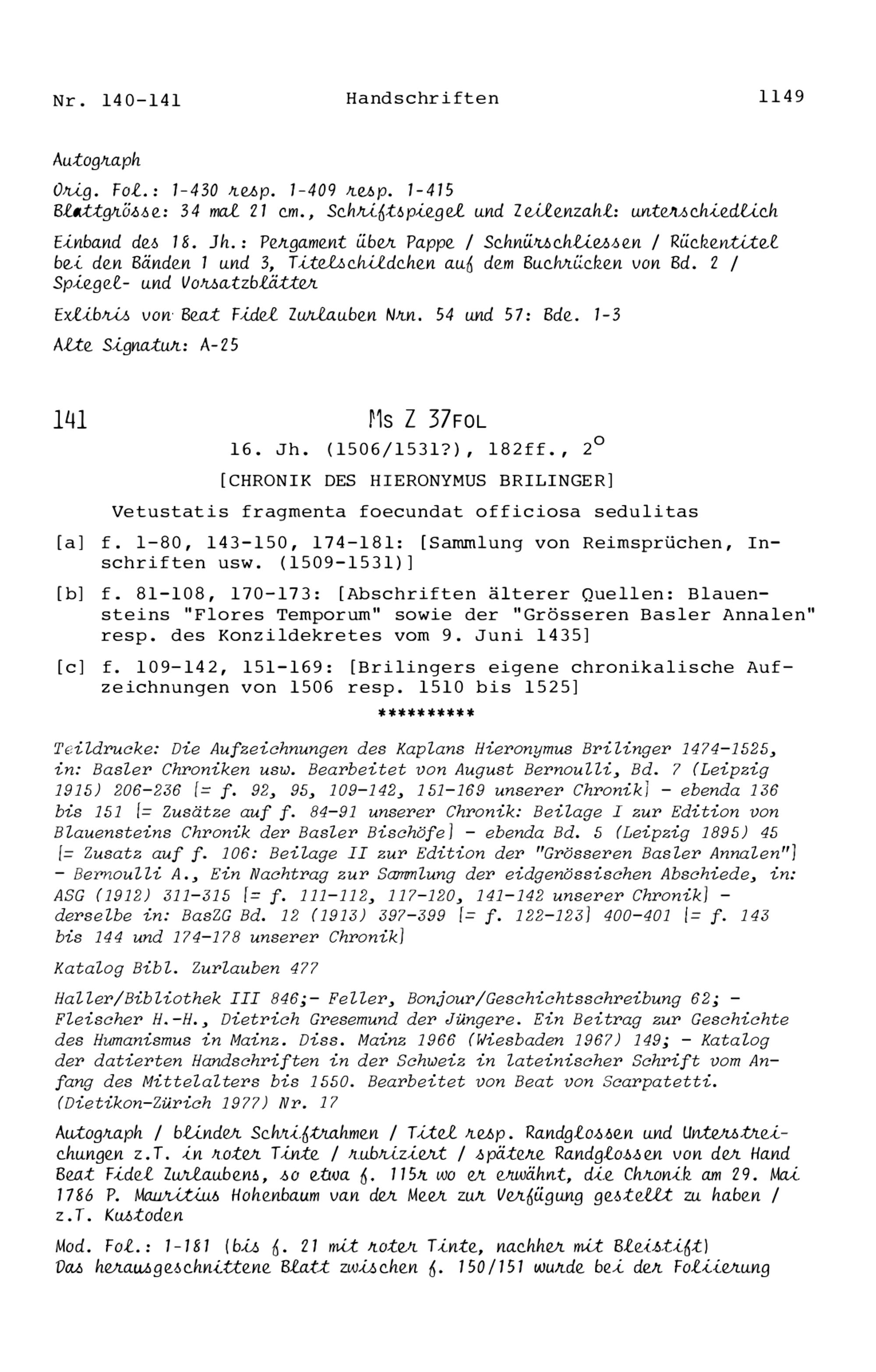 15. Die Handschriften in der Zurlaubiana