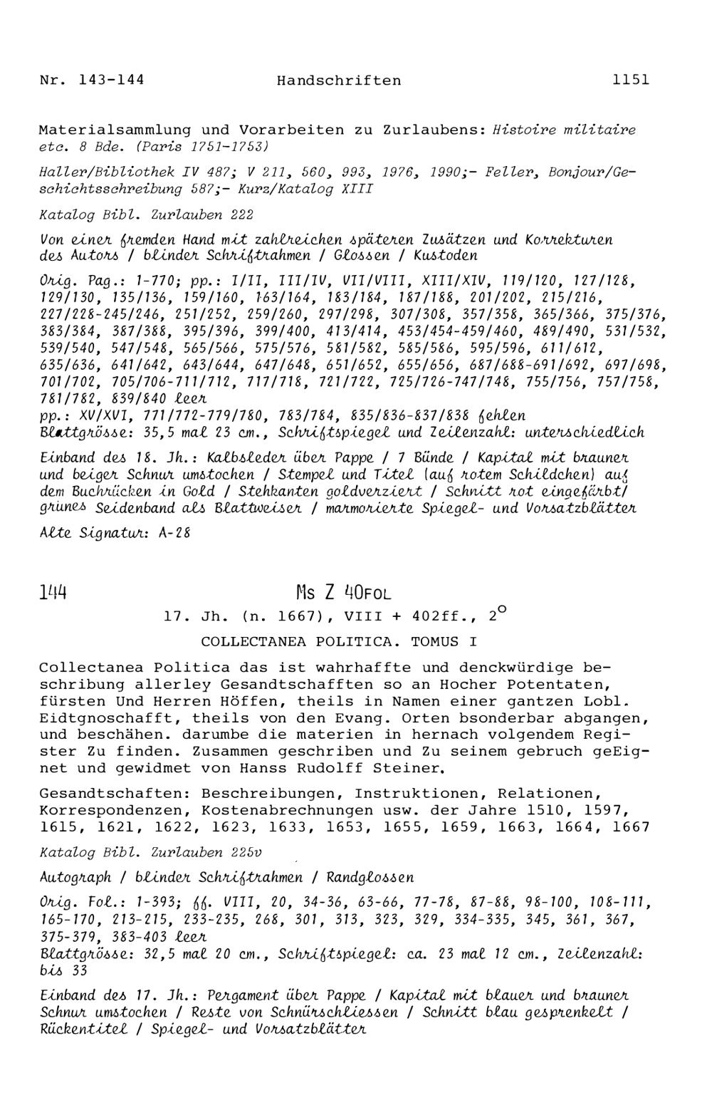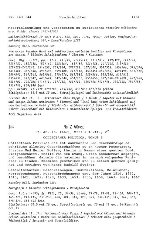 21. Register zu den Arbeiten von Beat Fidel Zurlauben
