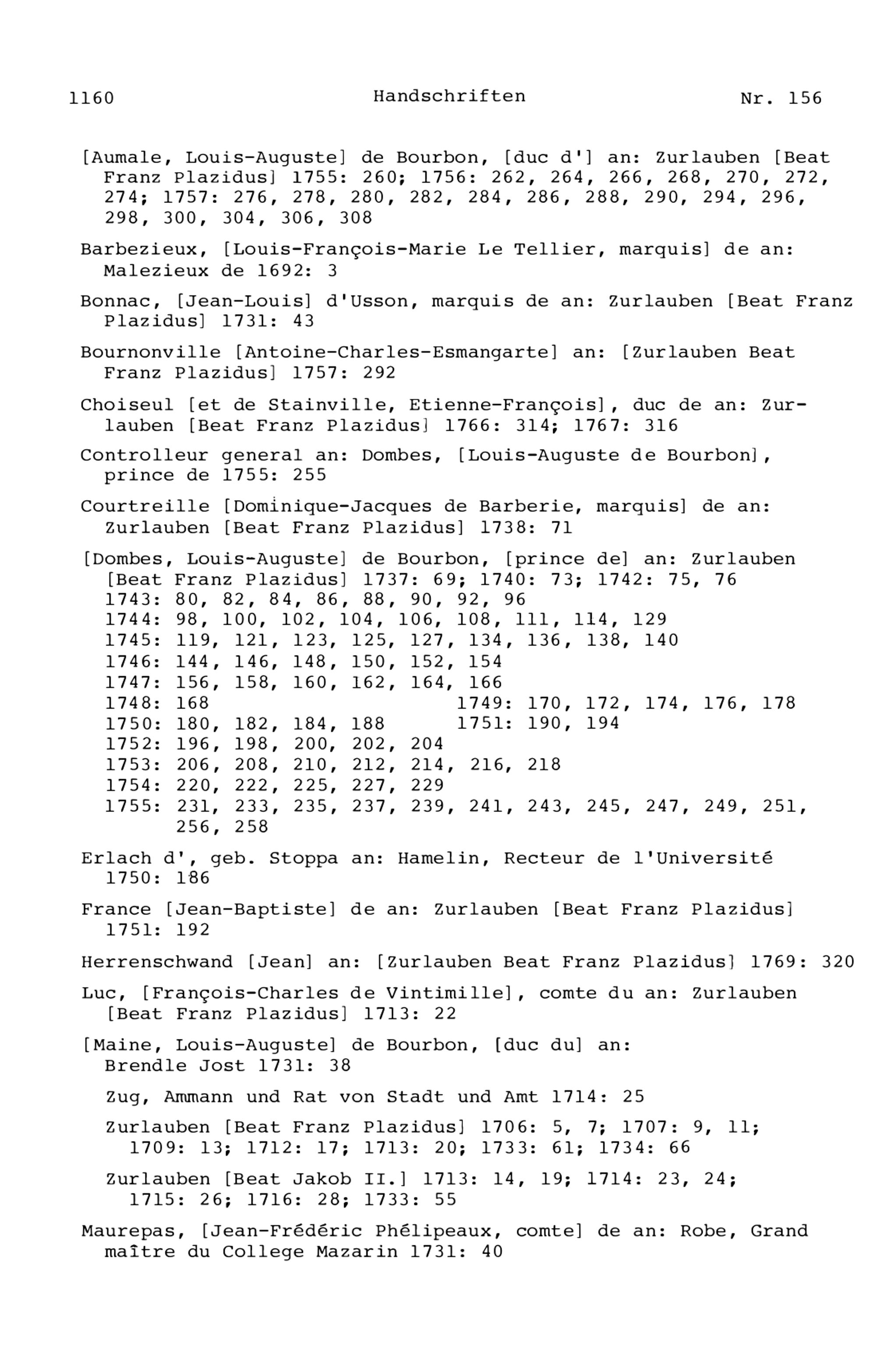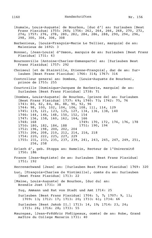 21. Register zu den Arbeiten von Beat Fidel Zurlauben
