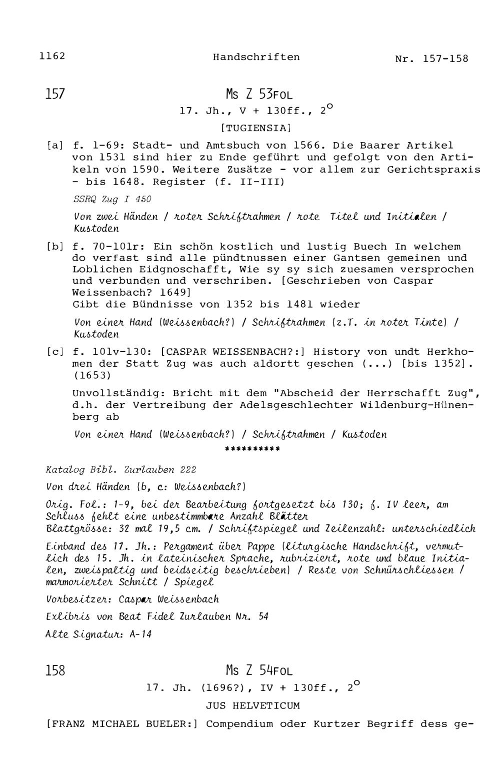 20. Bibliograohie der Arbeiten von Beat Fidel Zurlauben
