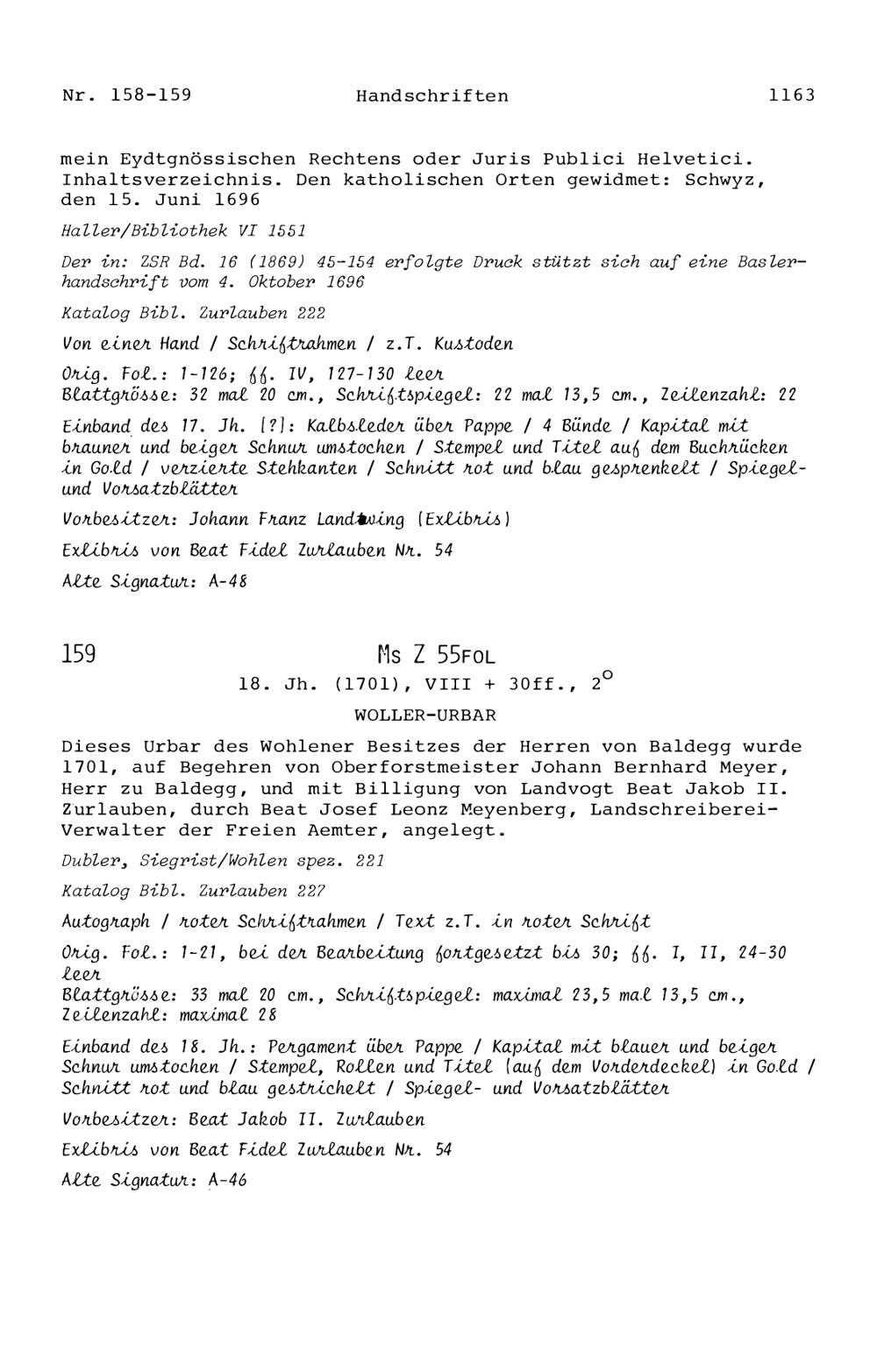 20. Bibliograohie der Arbeiten von Beat Fidel Zurlauben