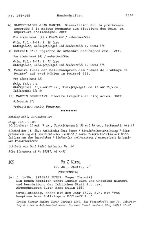 20. Bibliograohie der Arbeiten von Beat Fidel Zurlauben