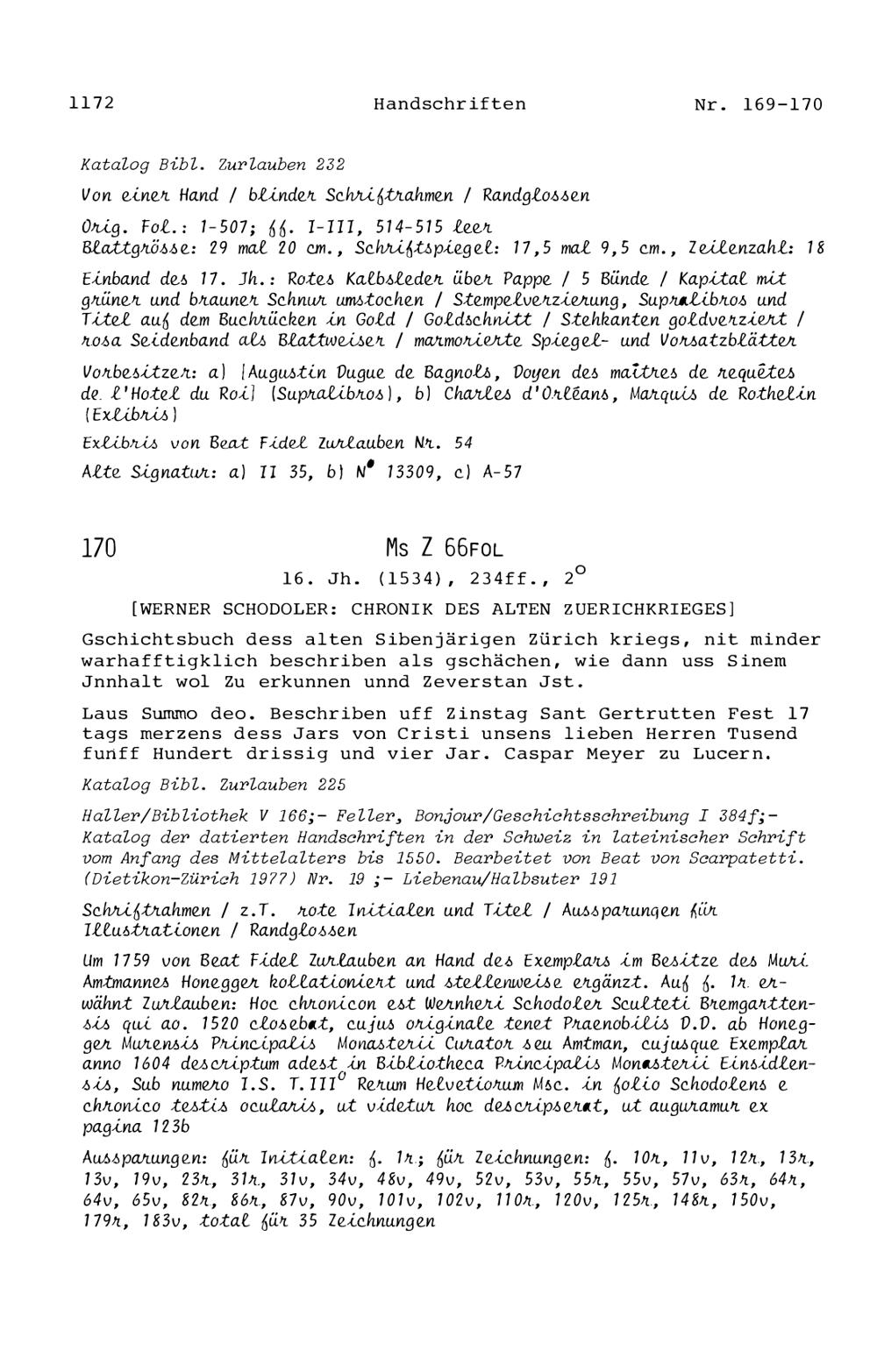 20. Bibliograohie der Arbeiten von Beat Fidel Zurlauben