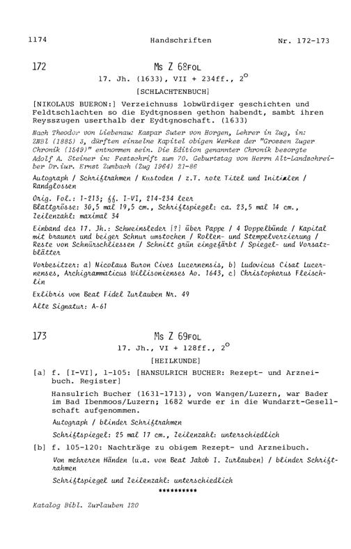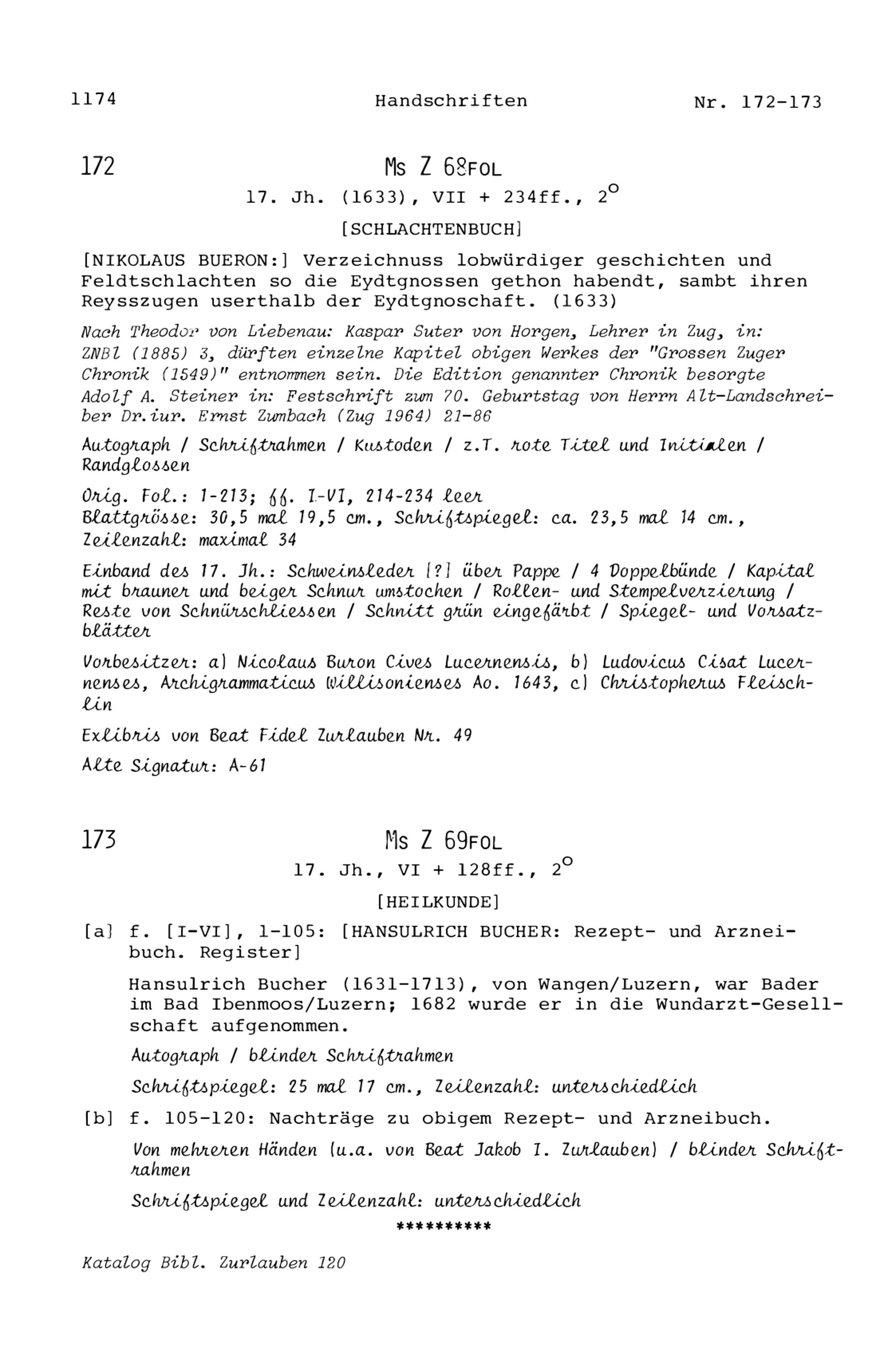 20. Bibliograohie der Arbeiten von Beat Fidel Zurlauben