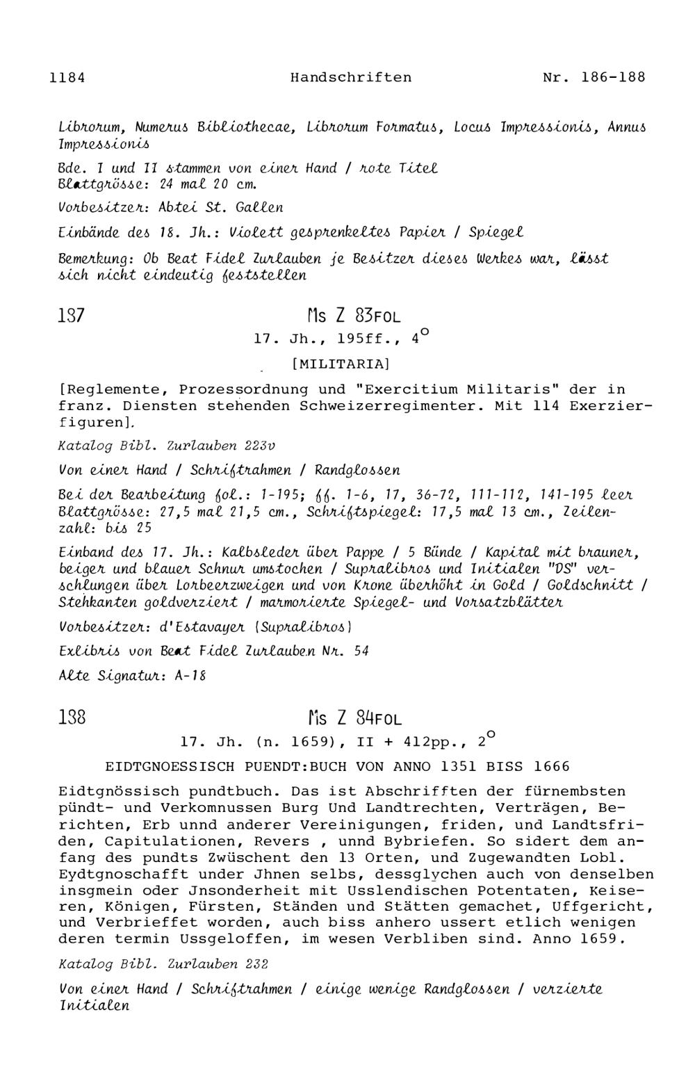 20. Bibliograohie der Arbeiten von Beat Fidel Zurlauben