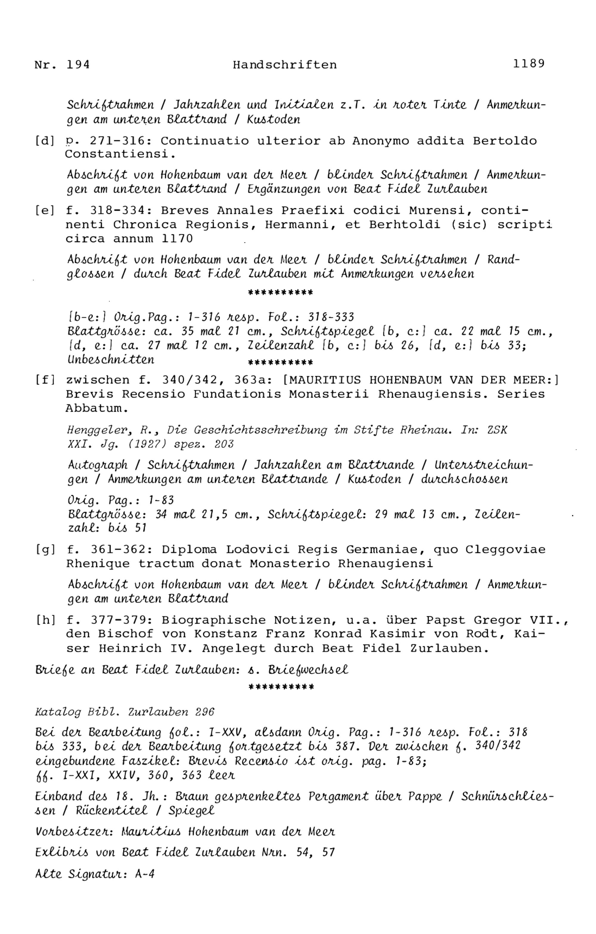 15. Die Handschriften in der Zurlaubiana