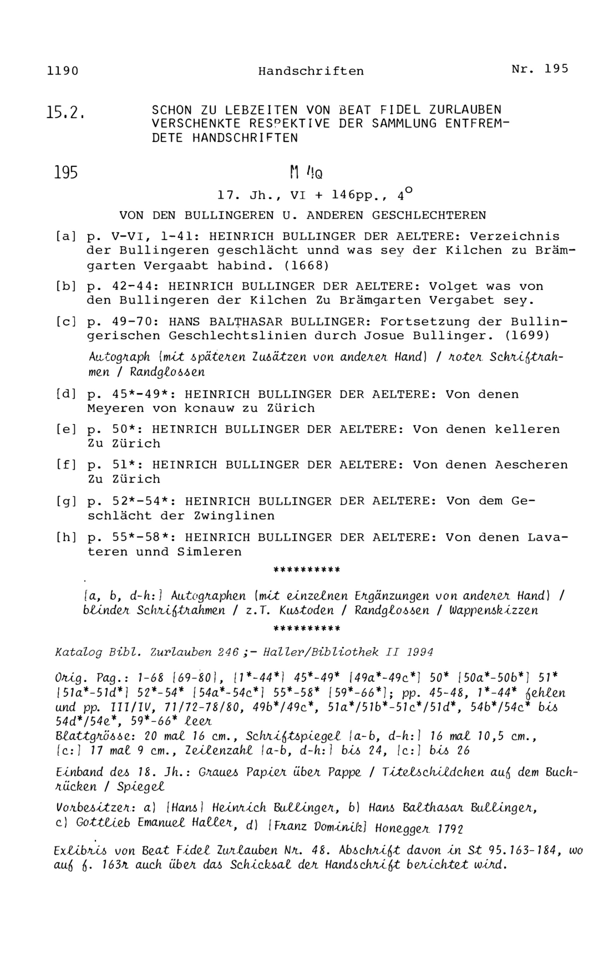 15. Die Handschriften in der Zurlaubiana