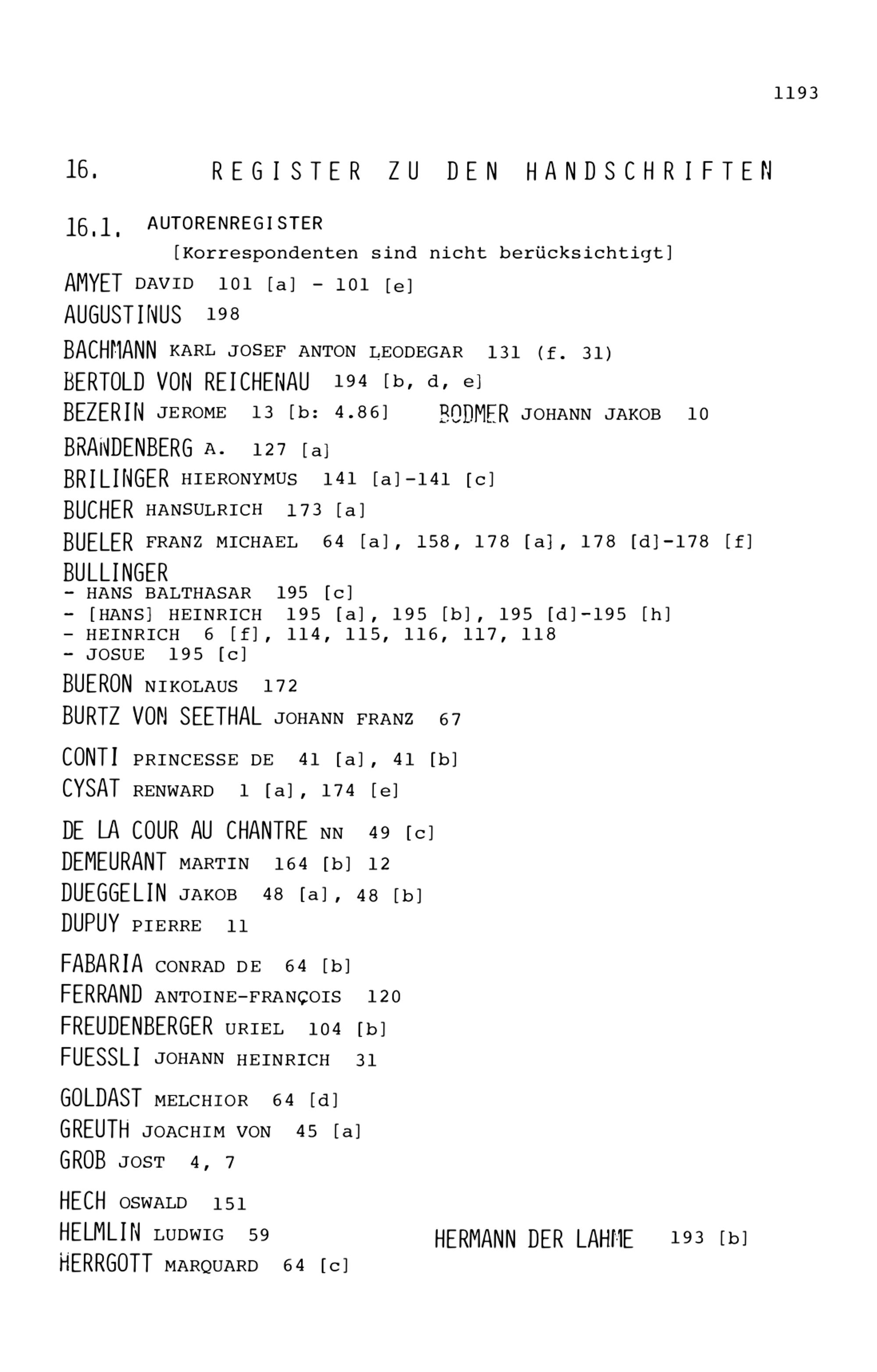 21. Register zu den Arbeiten von Beat Fidel Zurlauben