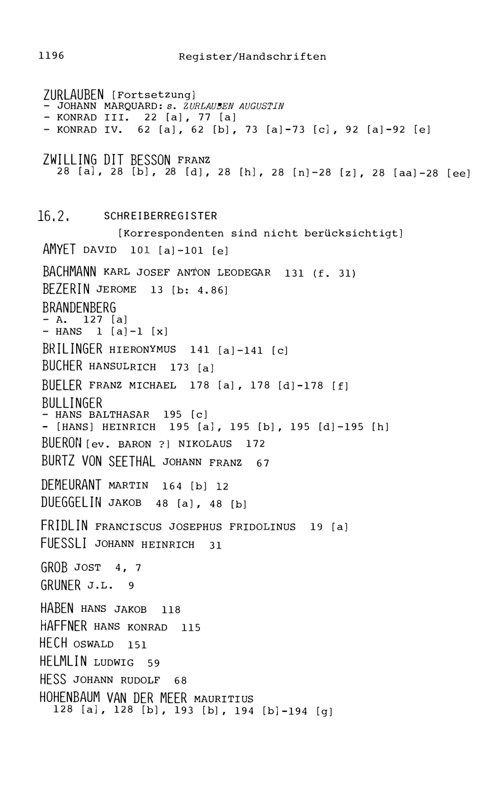 21. Register zu den Arbeiten von Beat Fidel Zurlauben