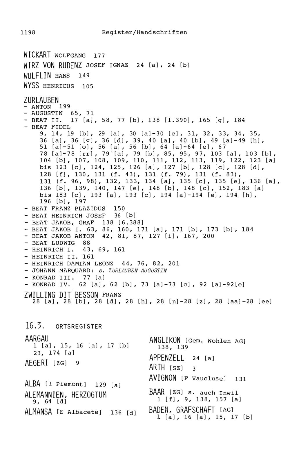 21. Register zu den Arbeiten von Beat Fidel Zurlauben
