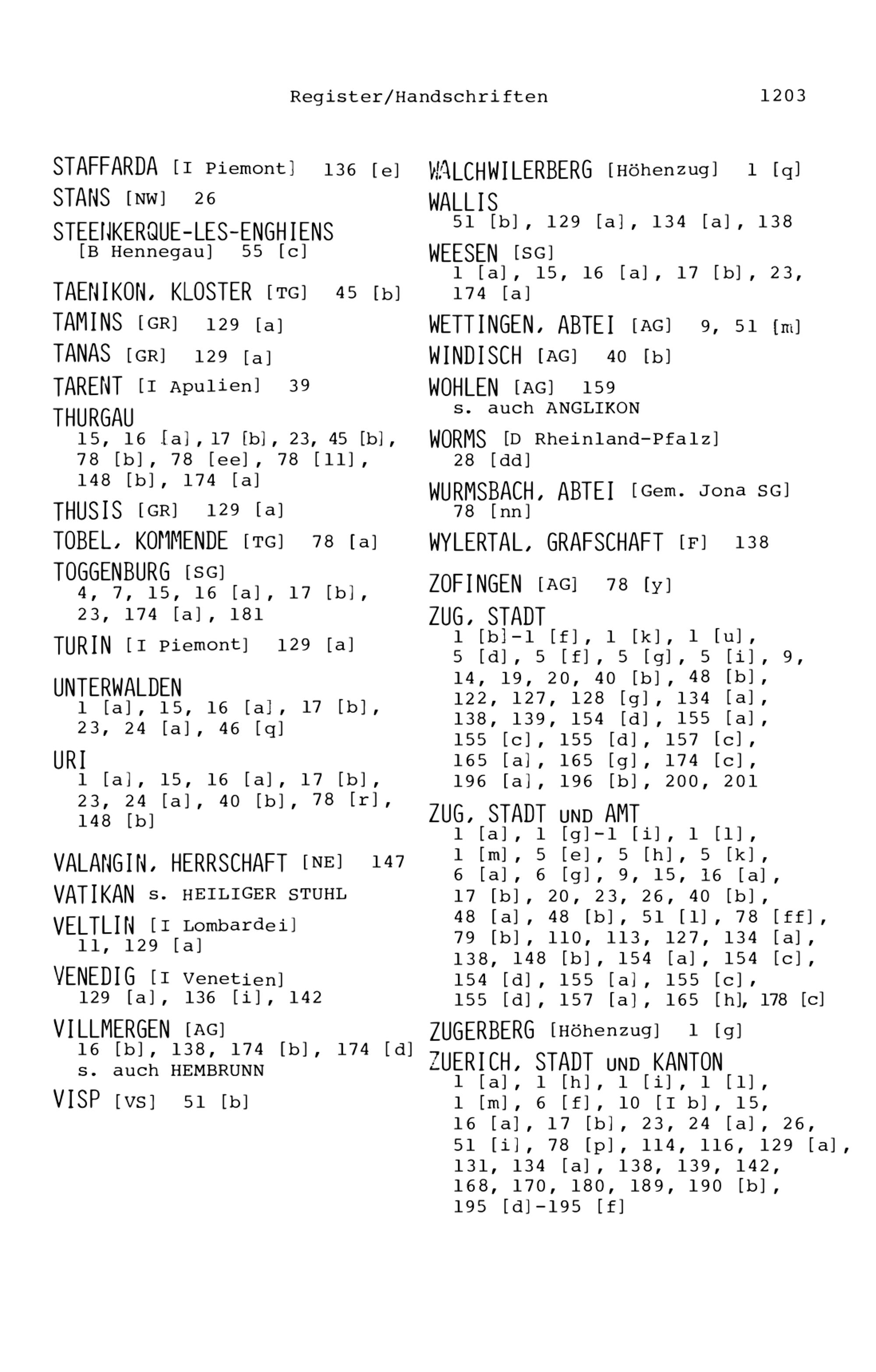 16. Register zu den Handschriften