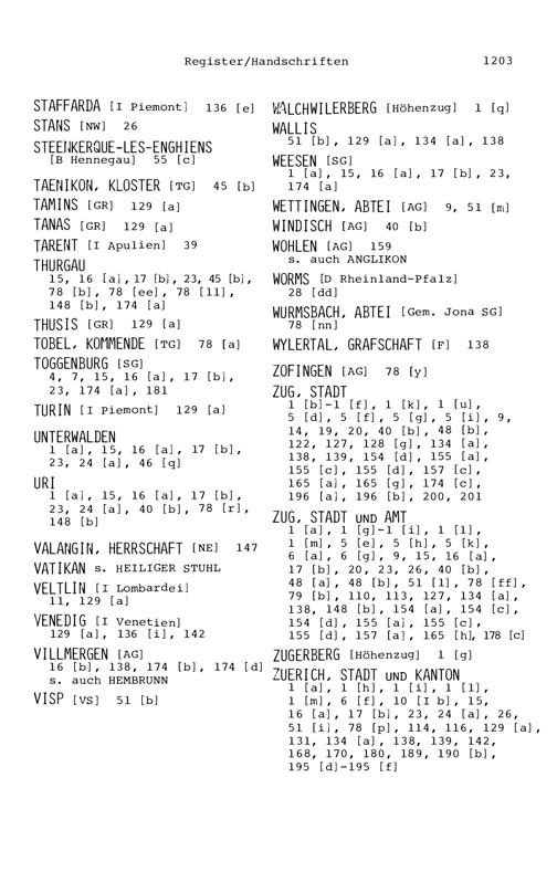 21. Register zu den Arbeiten von Beat Fidel Zurlauben