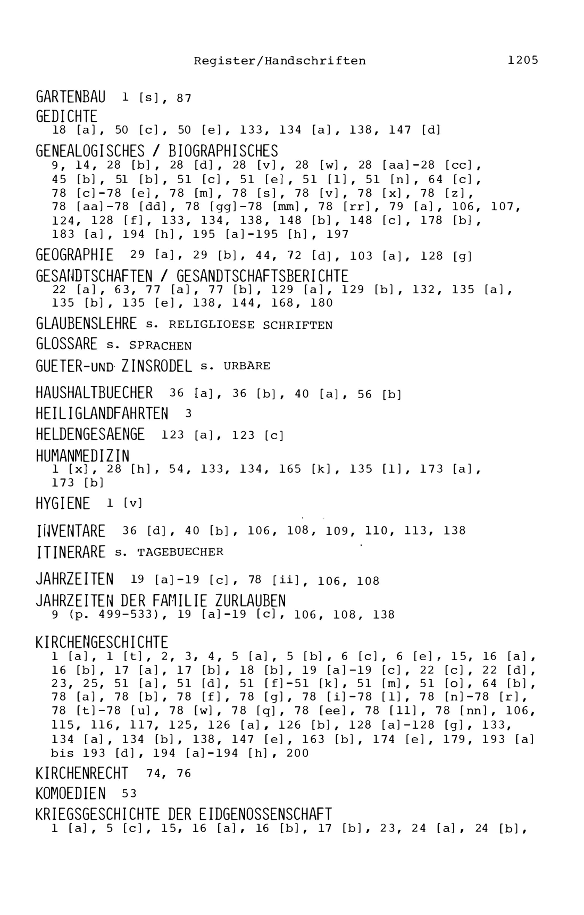 21. Register zu den Arbeiten von Beat Fidel Zurlauben