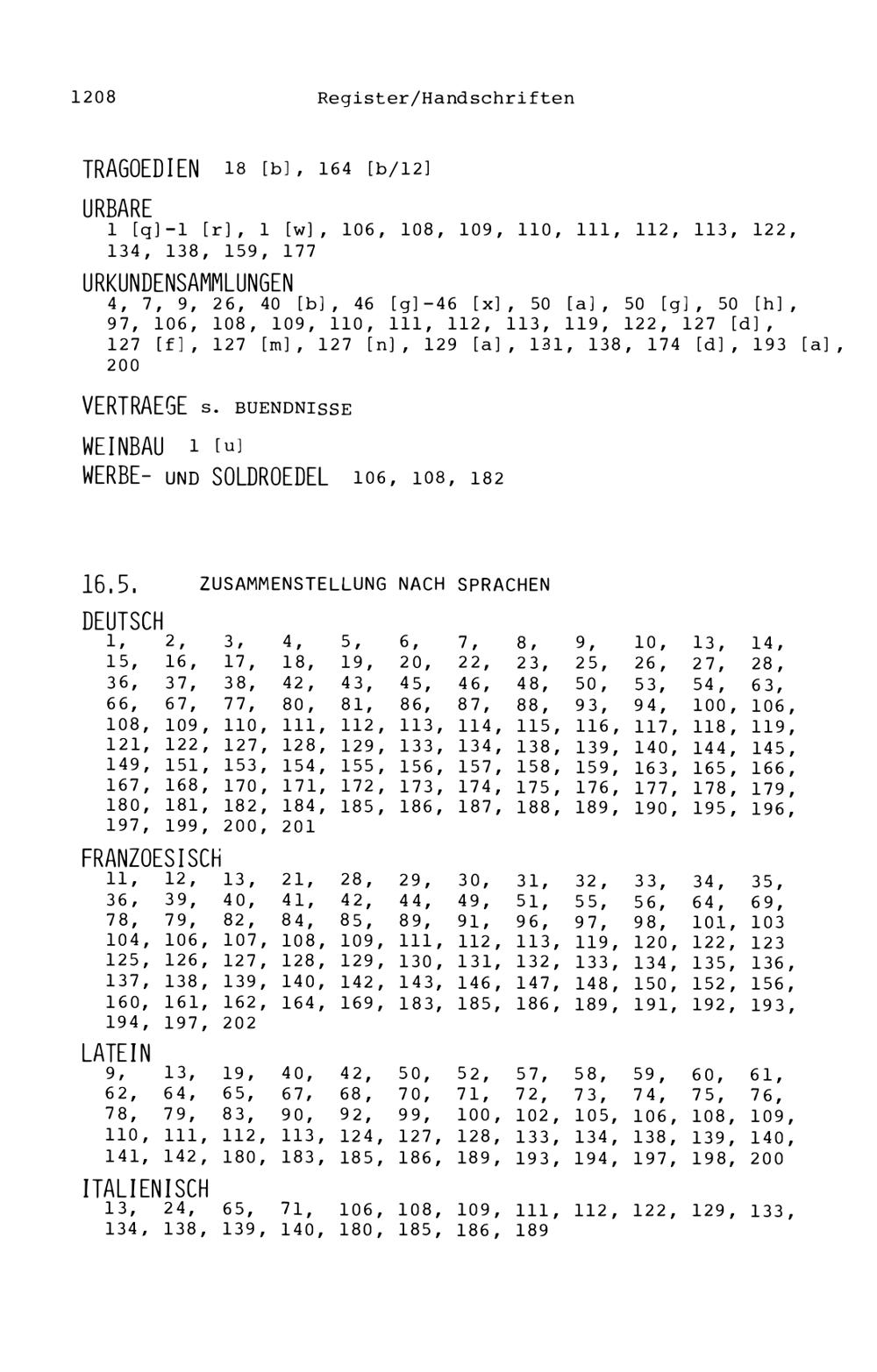 16. Register zu den Handschriften