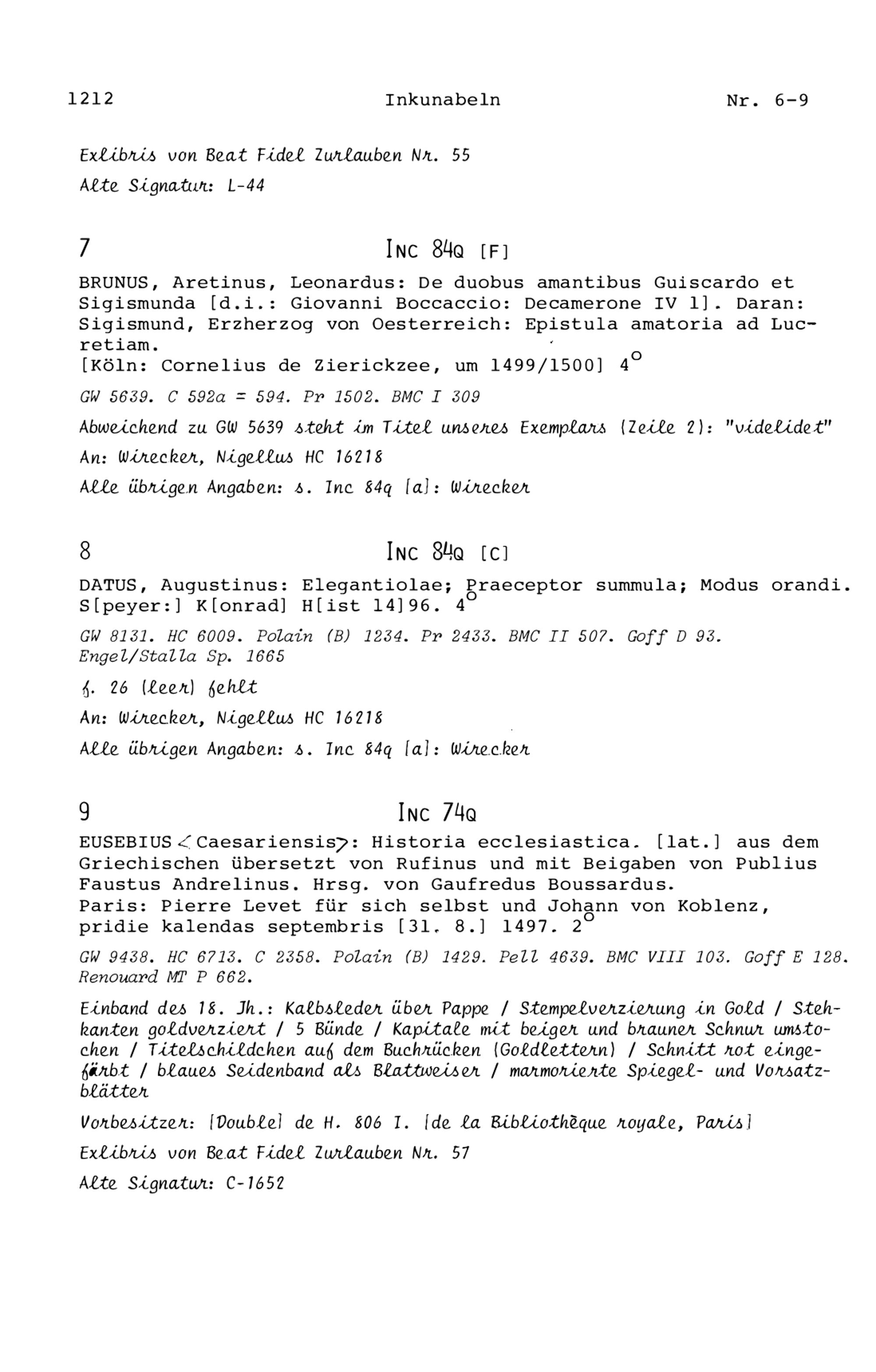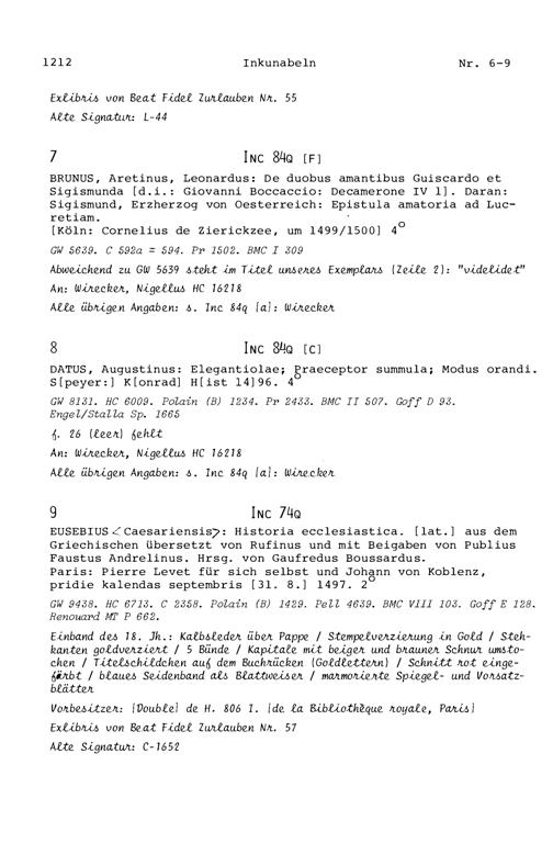 17. Die Inkunabeln in der Zurlaubiana