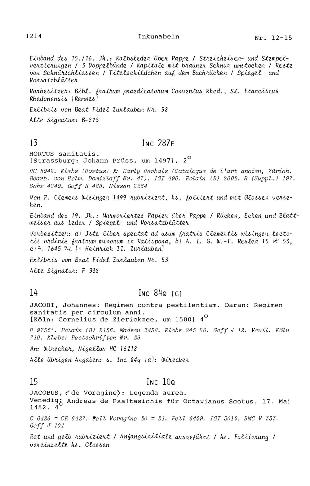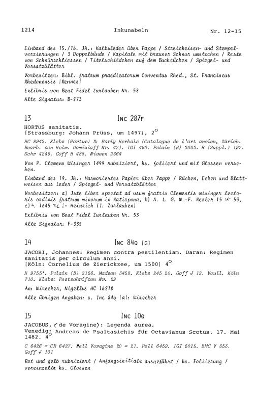 17. Die Inkunabeln in der Zurlaubiana