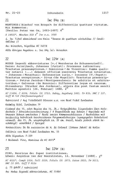 17. Die Inkunabeln in der Zurlaubiana