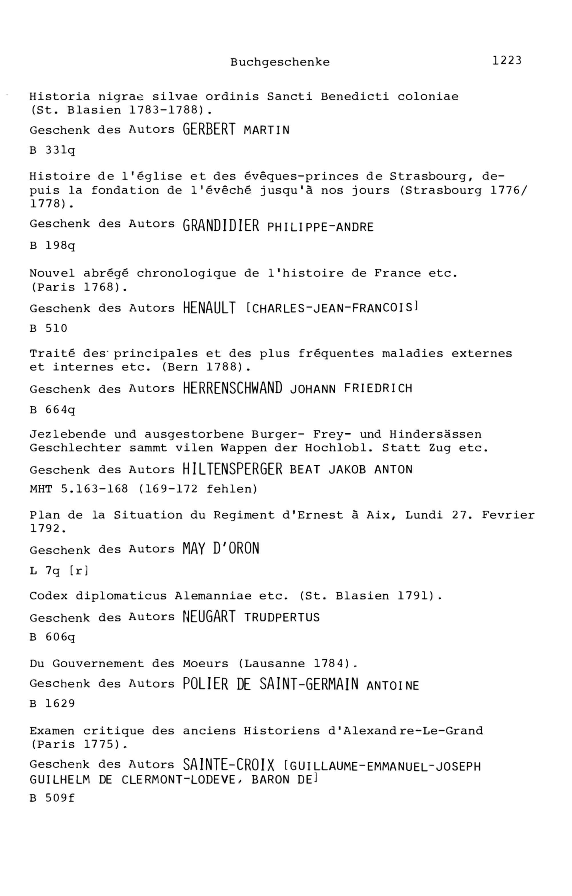 20. Bibliograohie der Arbeiten von Beat Fidel Zurlauben