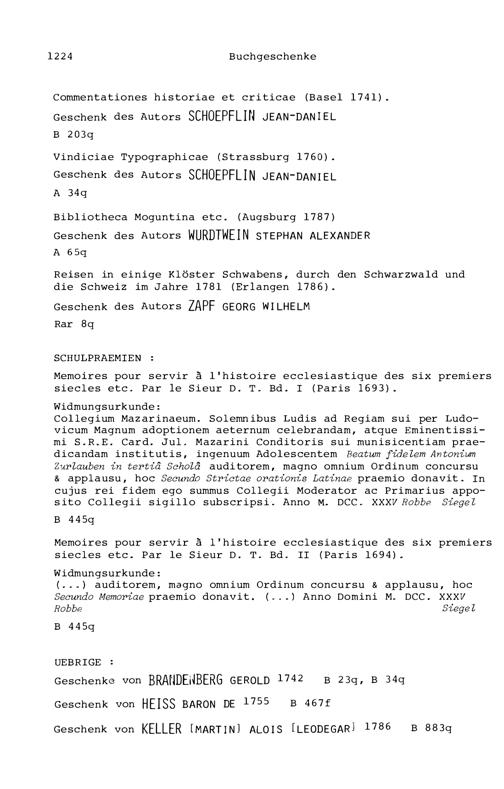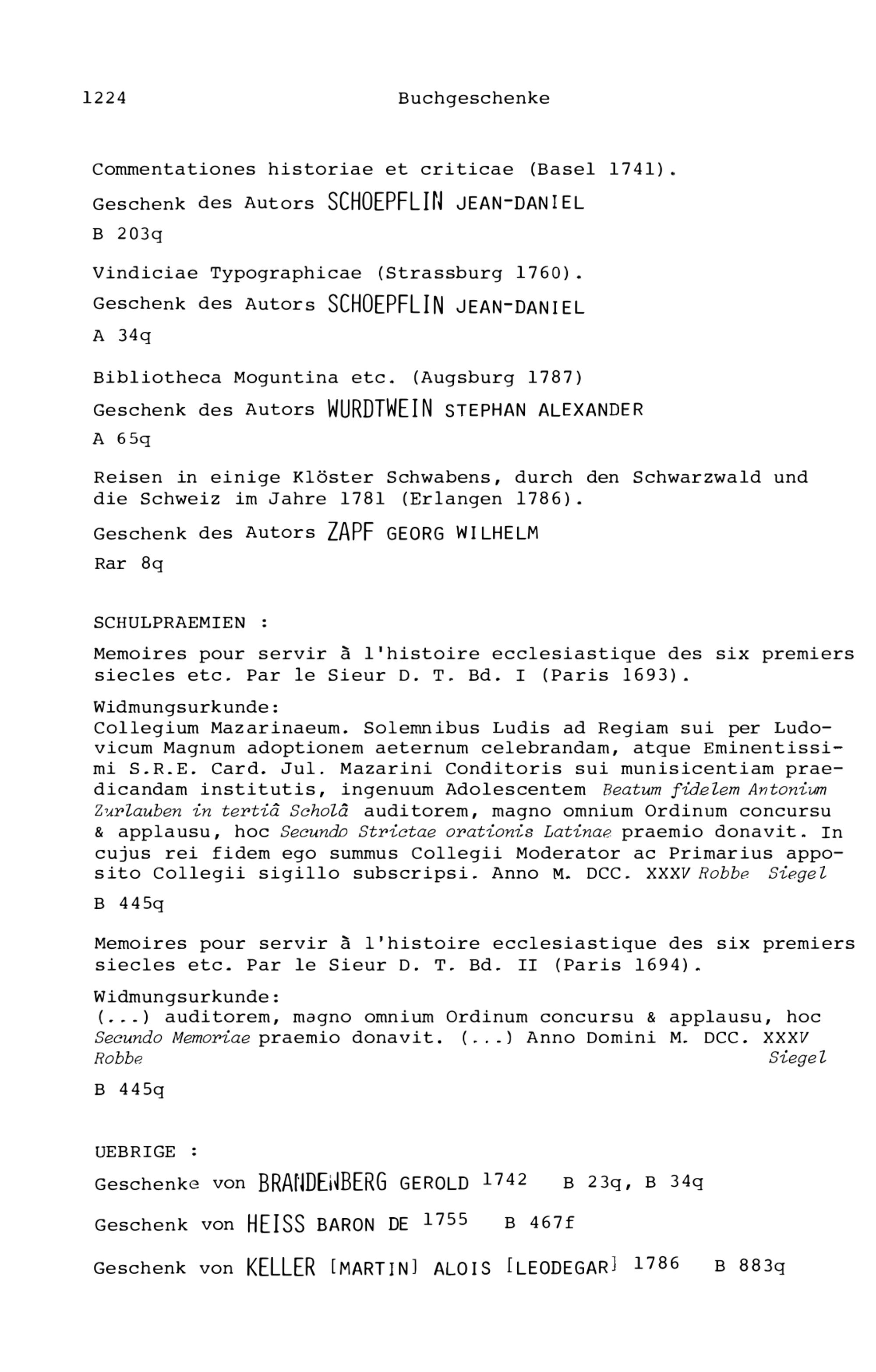 18. Die Buchgeschenke in resp. aus der Zurlaubiana