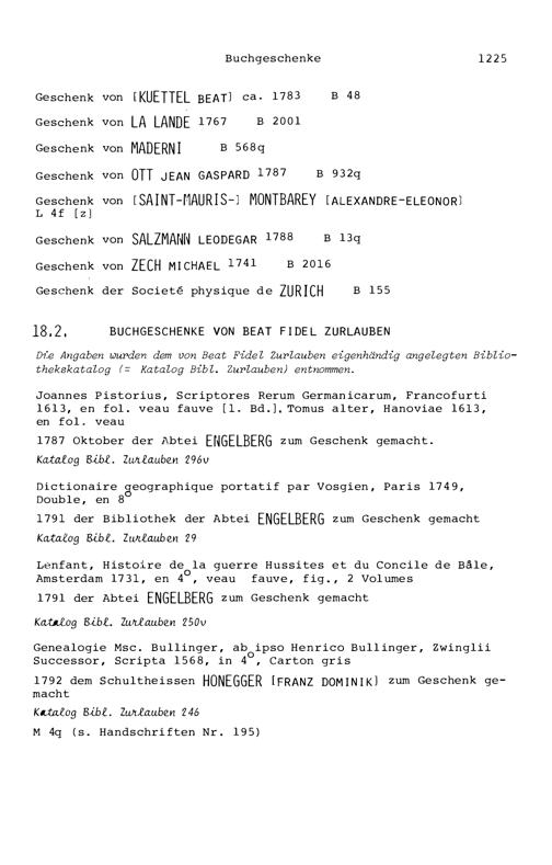 18. Die Buchgeschenke in resp. aus der Zurlaubiana