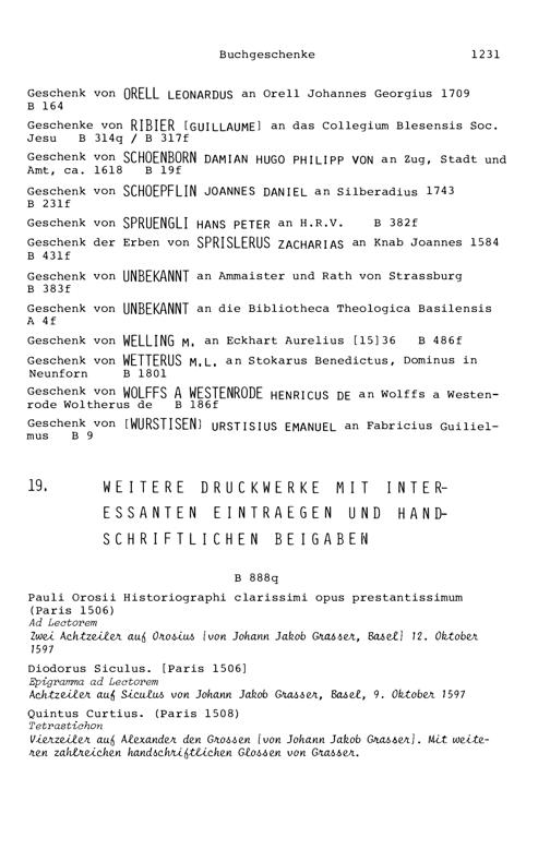 19. Weitere Druckwerke mit interessanten Einträgen und handschriftlichen Beigaben