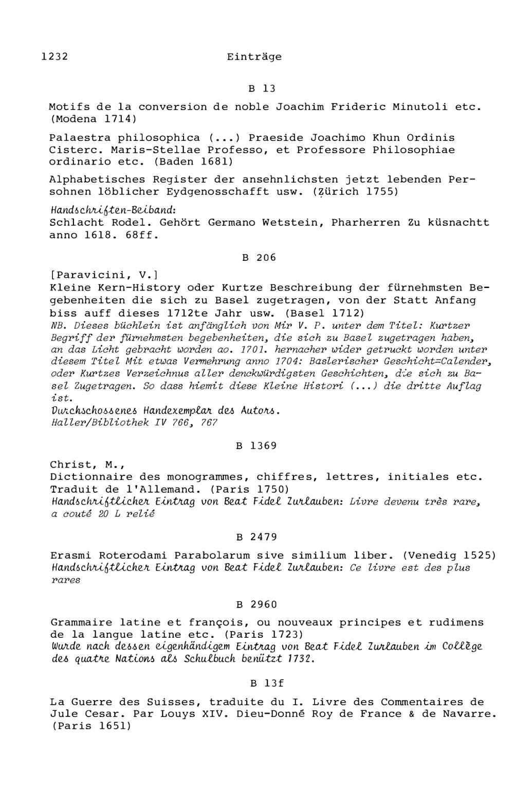 20. Bibliograohie der Arbeiten von Beat Fidel Zurlauben