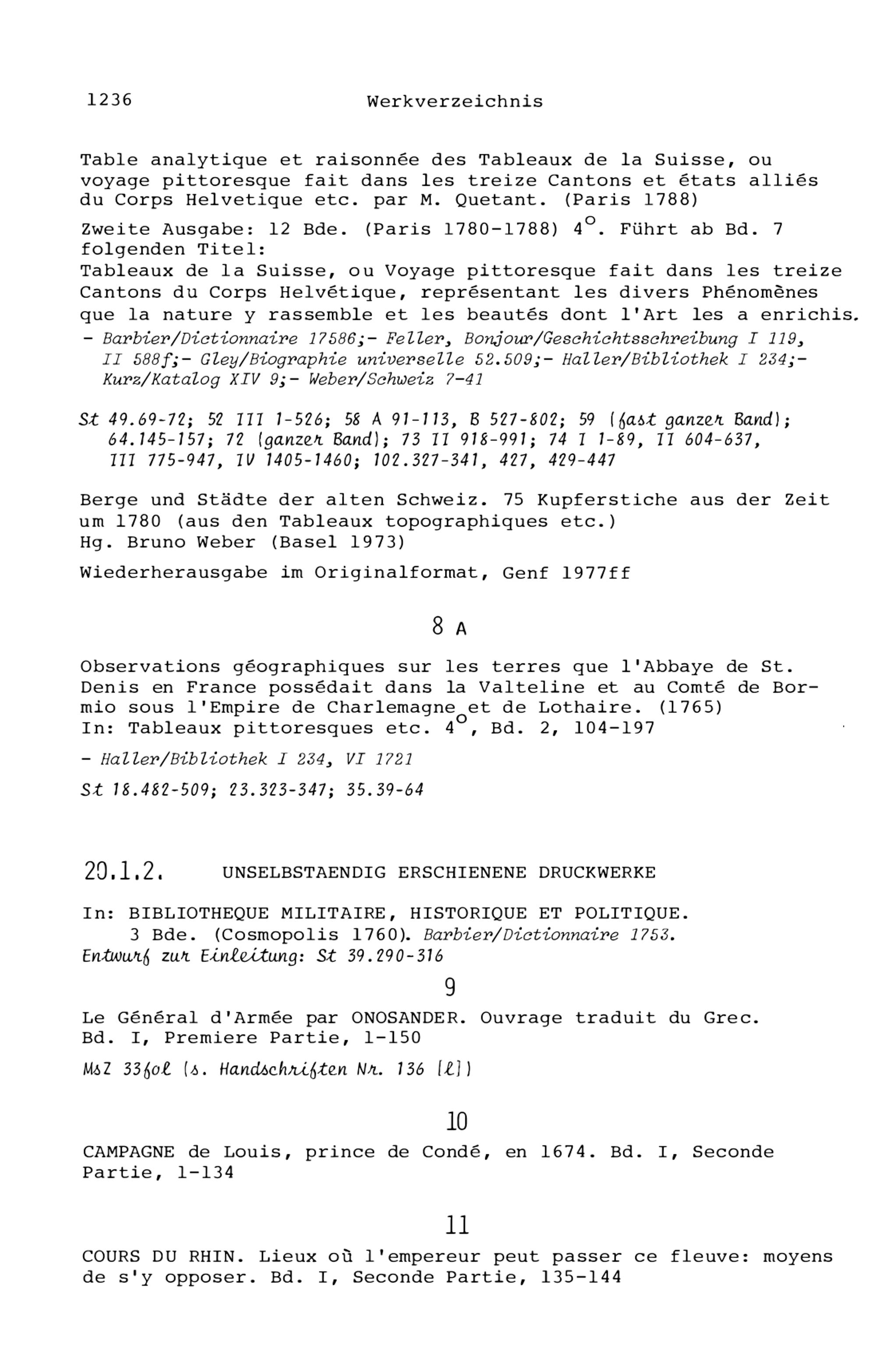 20. Bibliograohie der Arbeiten von Beat Fidel Zurlauben