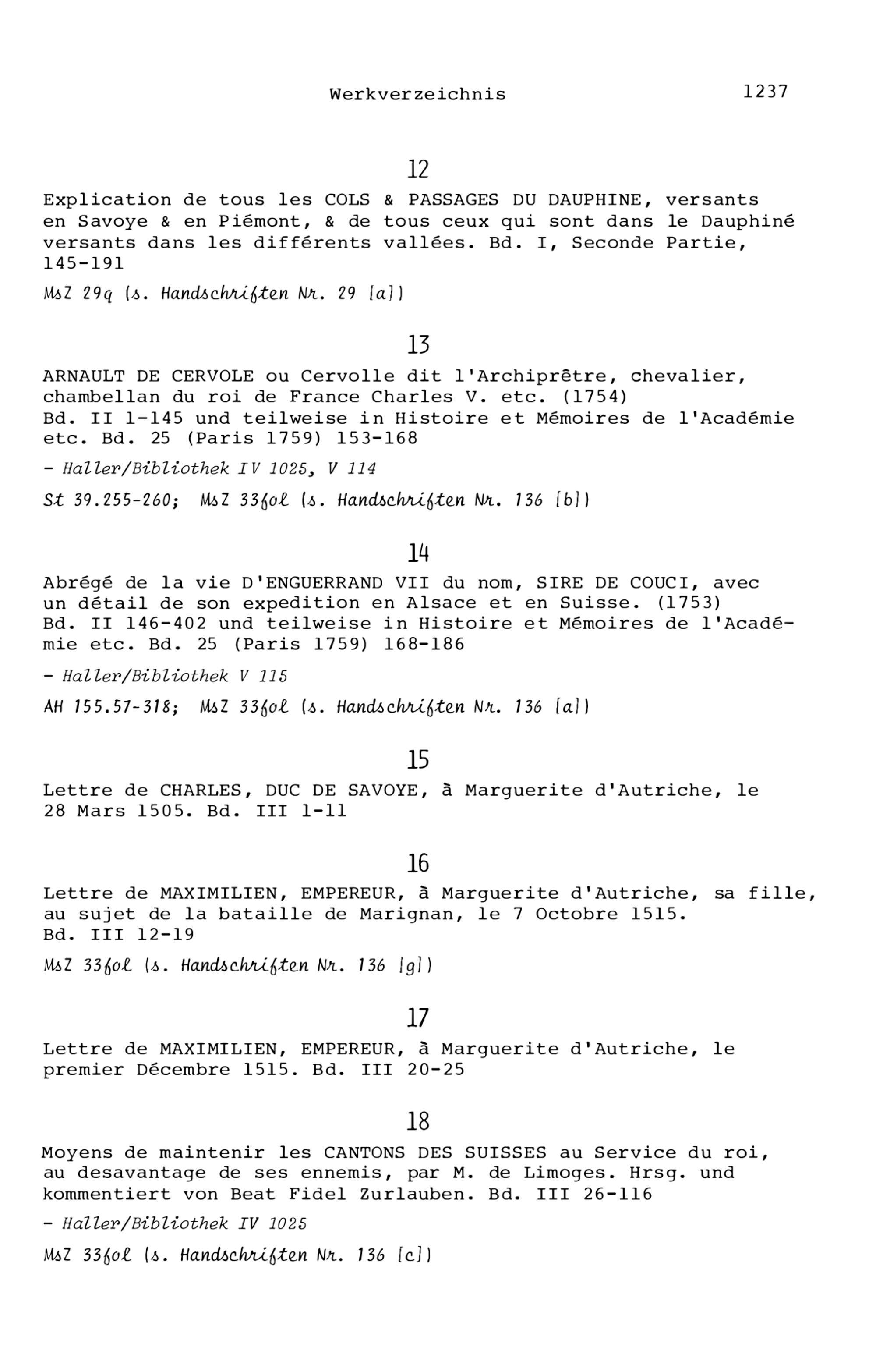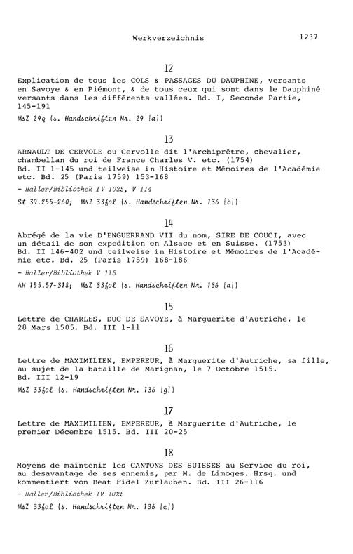 20. Bibliograohie der Arbeiten von Beat Fidel Zurlauben