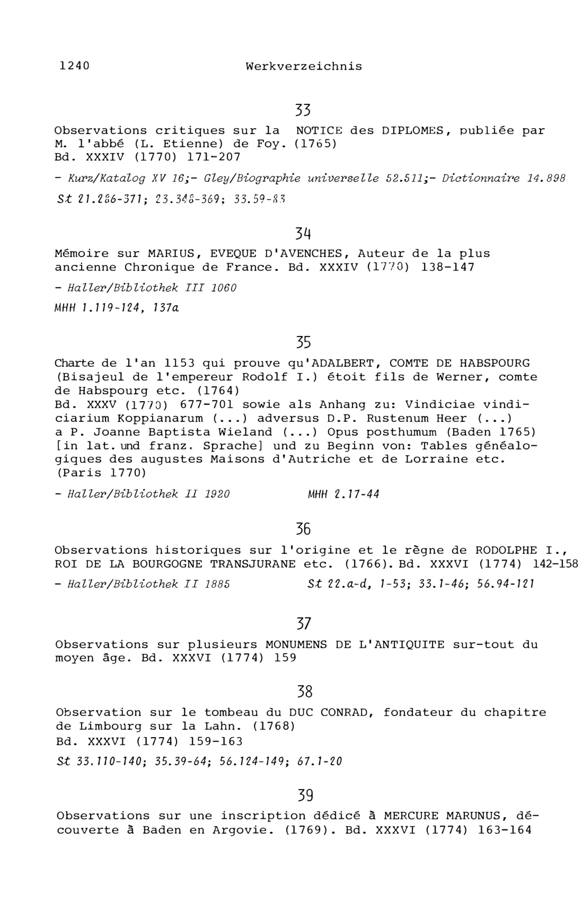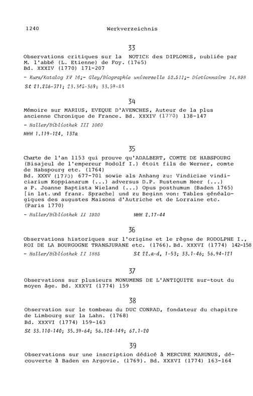 20. Bibliograohie der Arbeiten von Beat Fidel Zurlauben