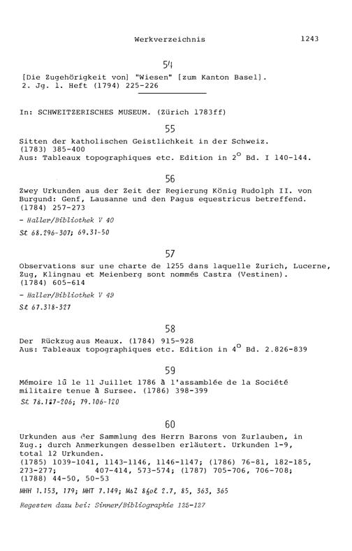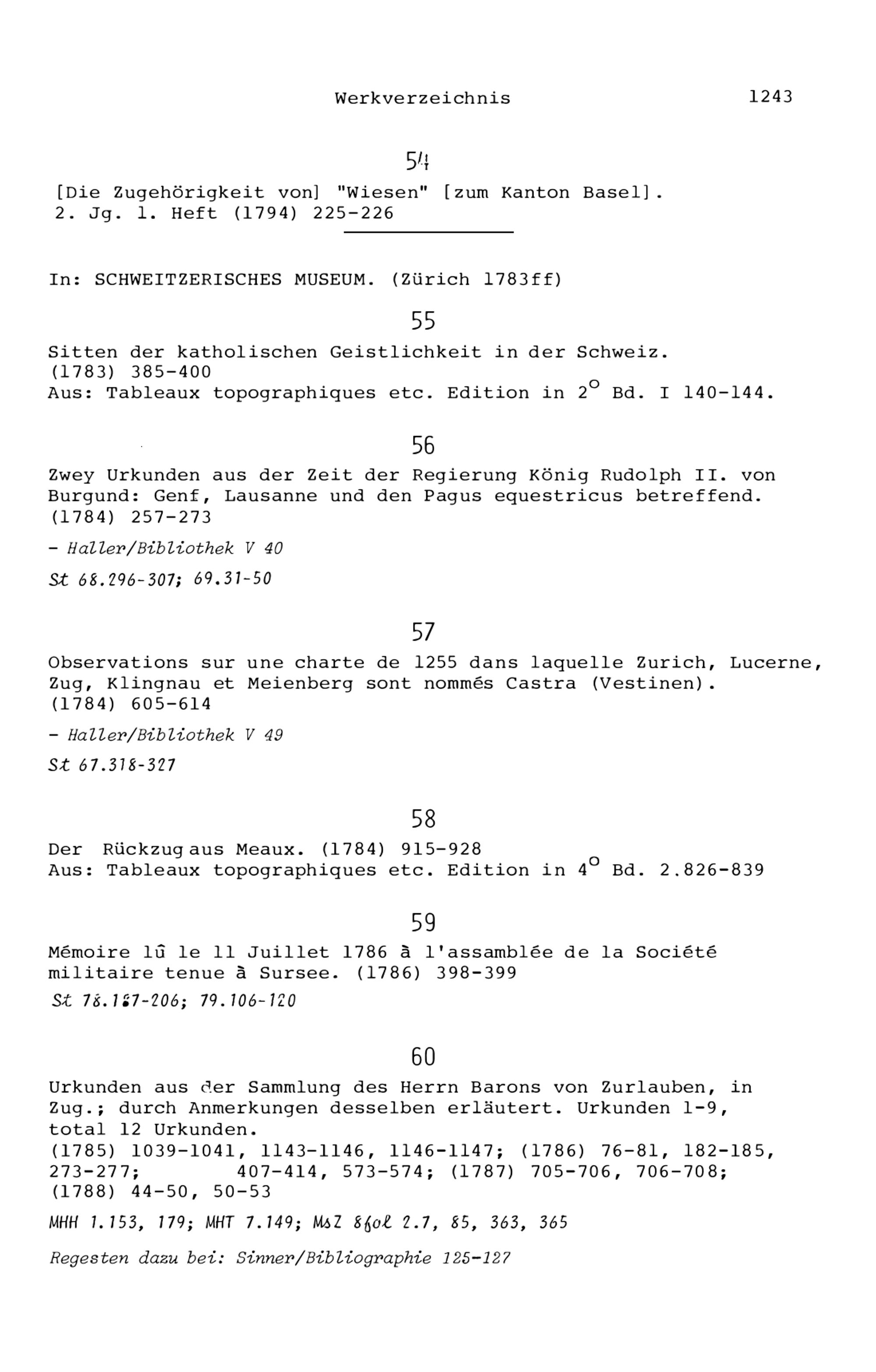 20. Bibliograohie der Arbeiten von Beat Fidel Zurlauben