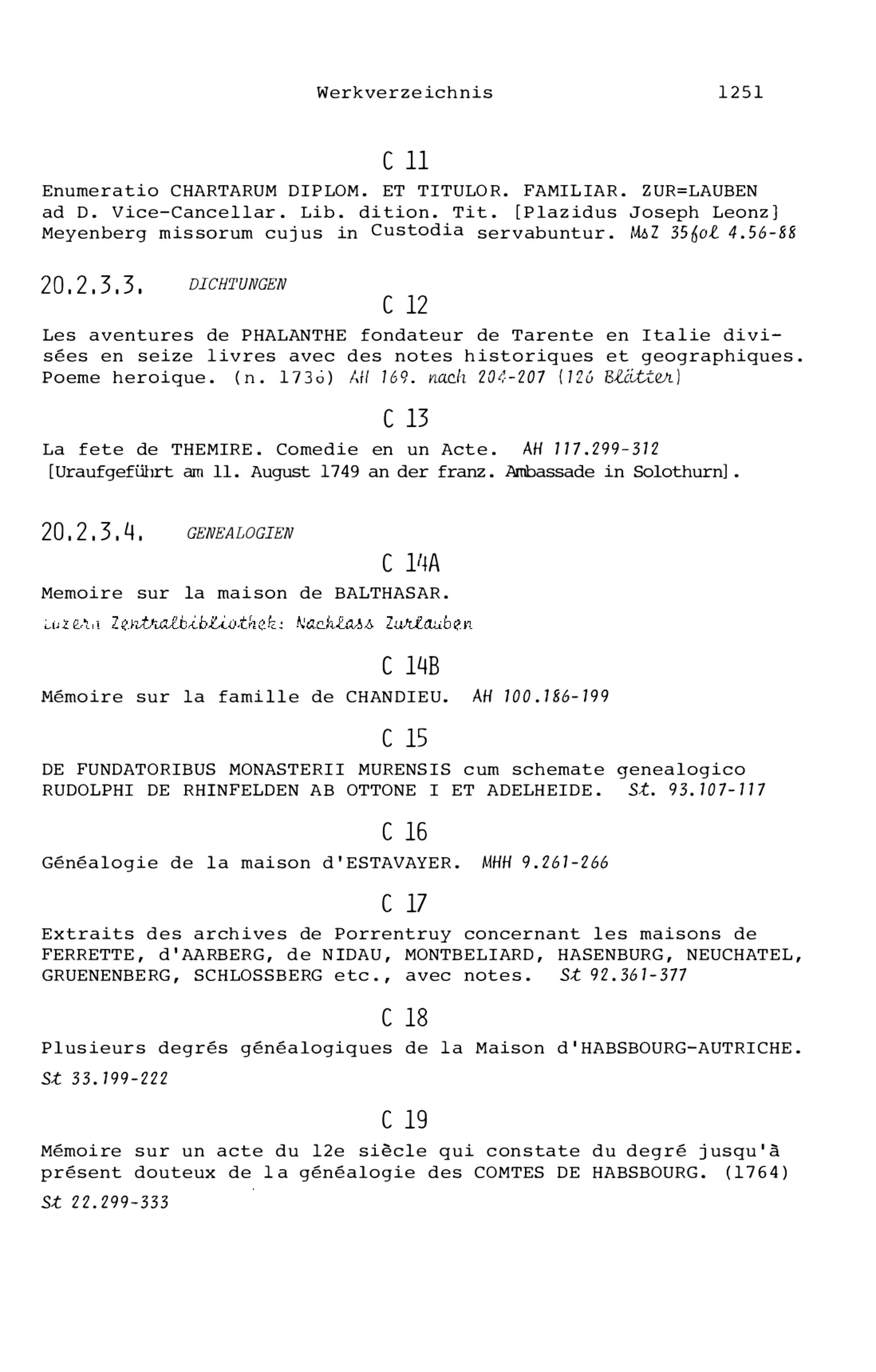 20. Bibliograohie der Arbeiten von Beat Fidel Zurlauben