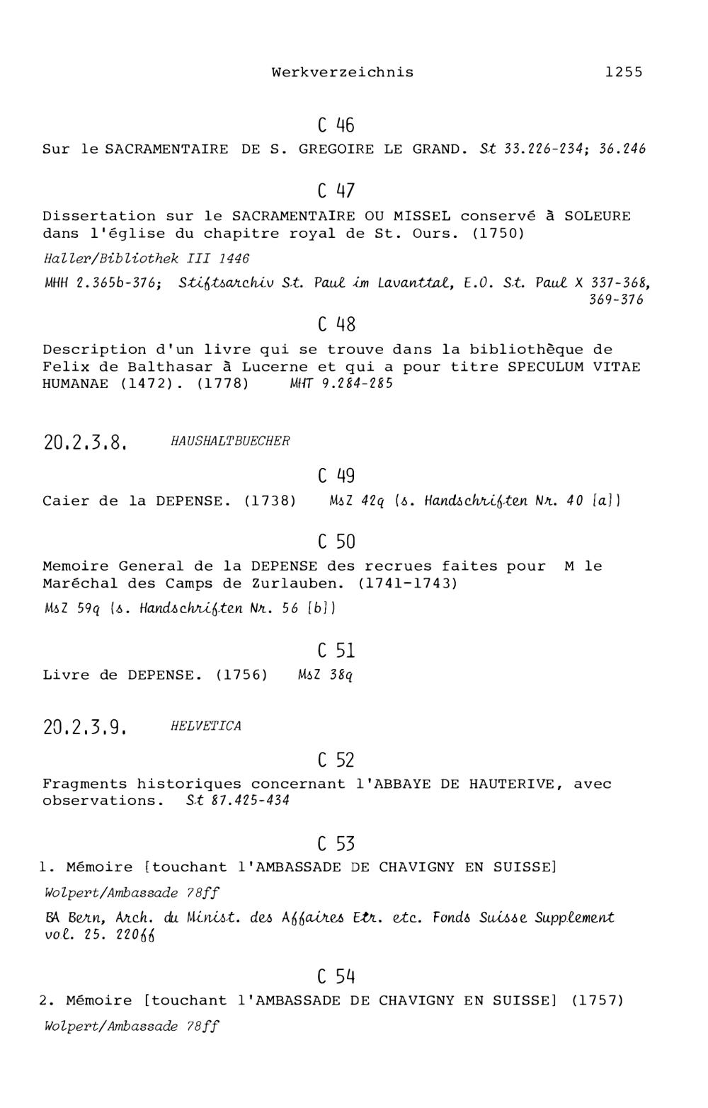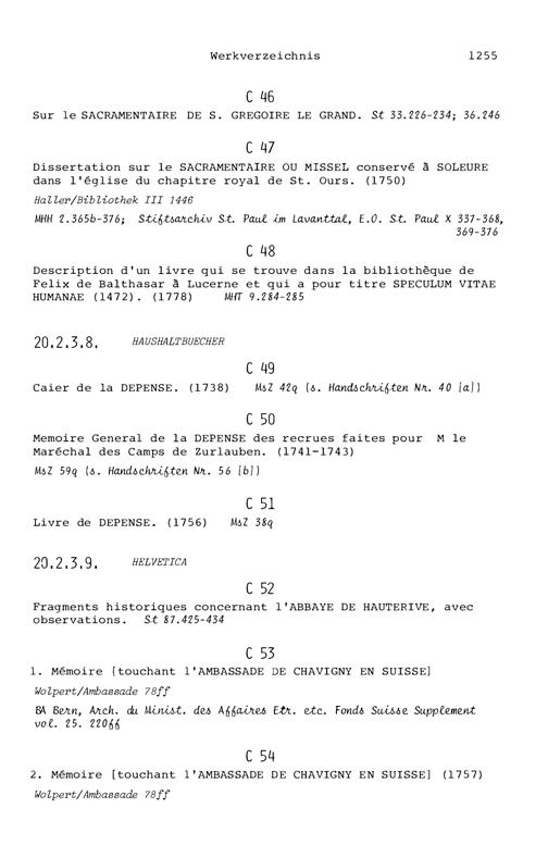 20. Bibliograohie der Arbeiten von Beat Fidel Zurlauben