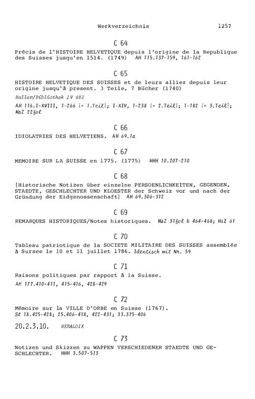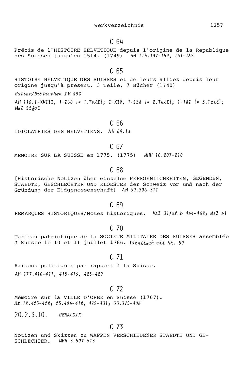 20. Bibliograohie der Arbeiten von Beat Fidel Zurlauben