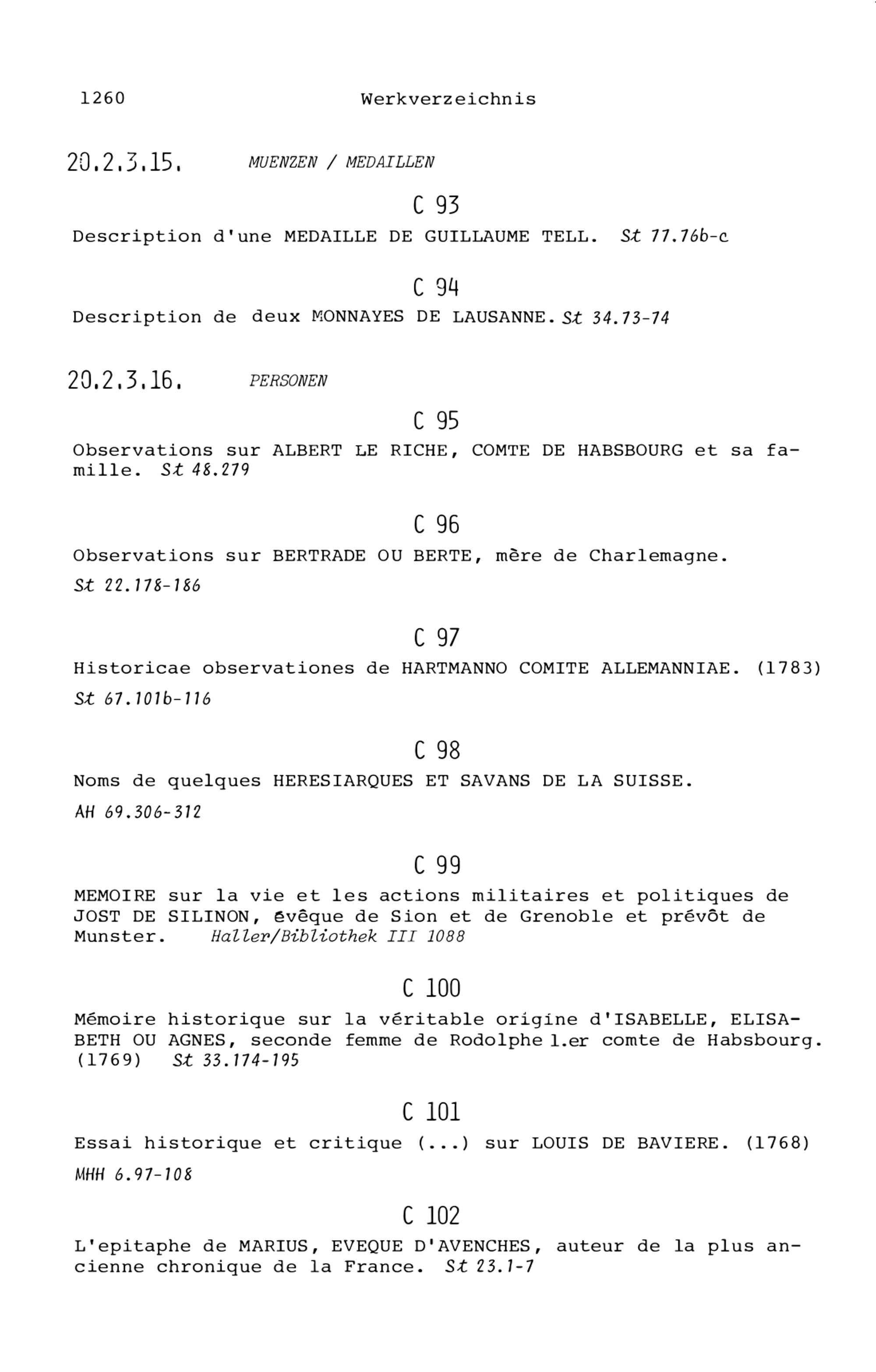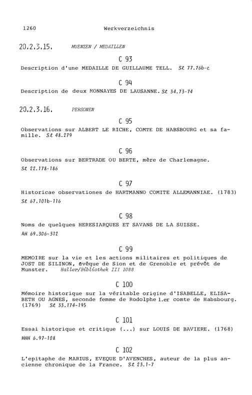 20. Bibliograohie der Arbeiten von Beat Fidel Zurlauben