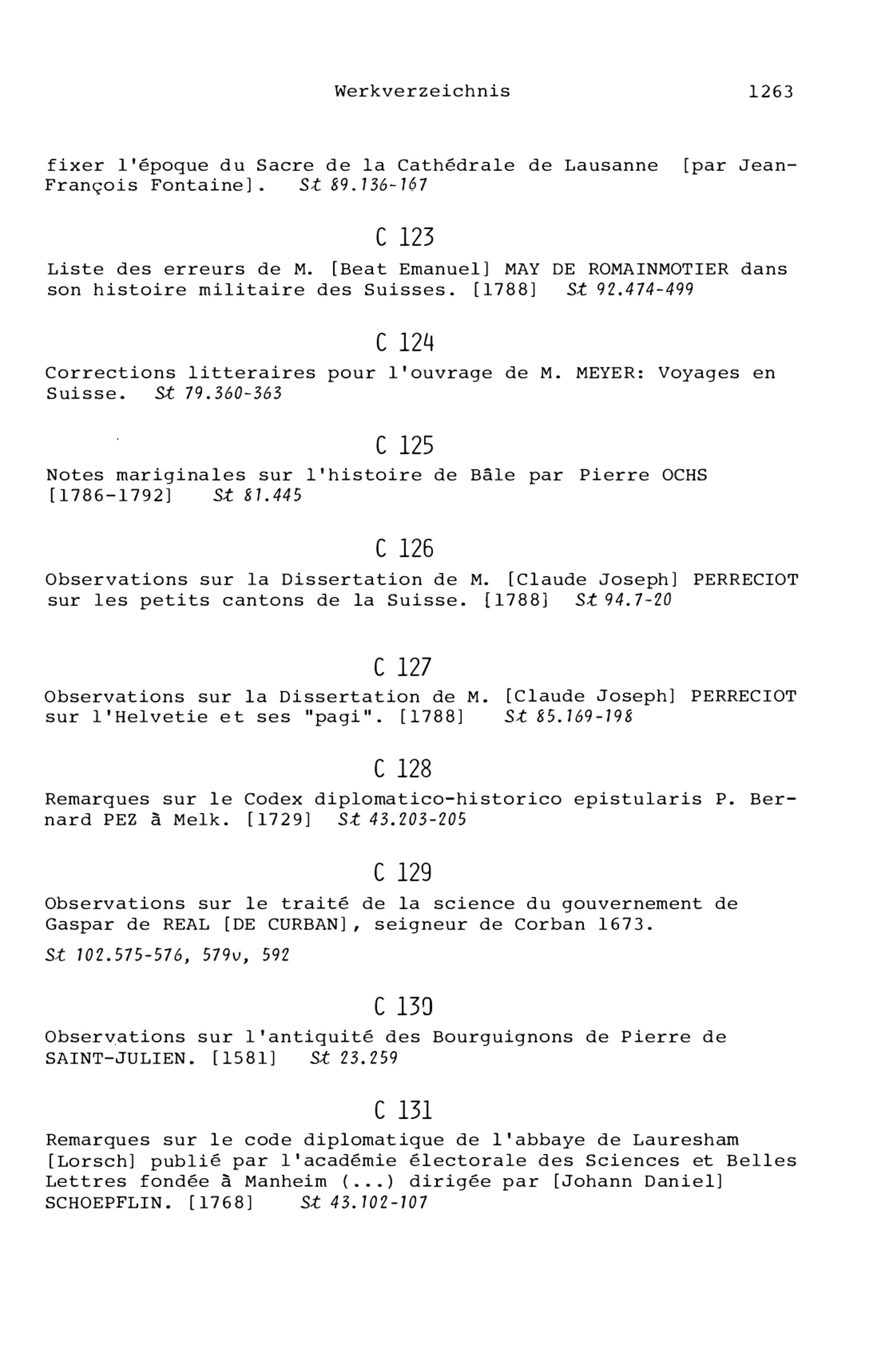 20. Bibliograohie der Arbeiten von Beat Fidel Zurlauben