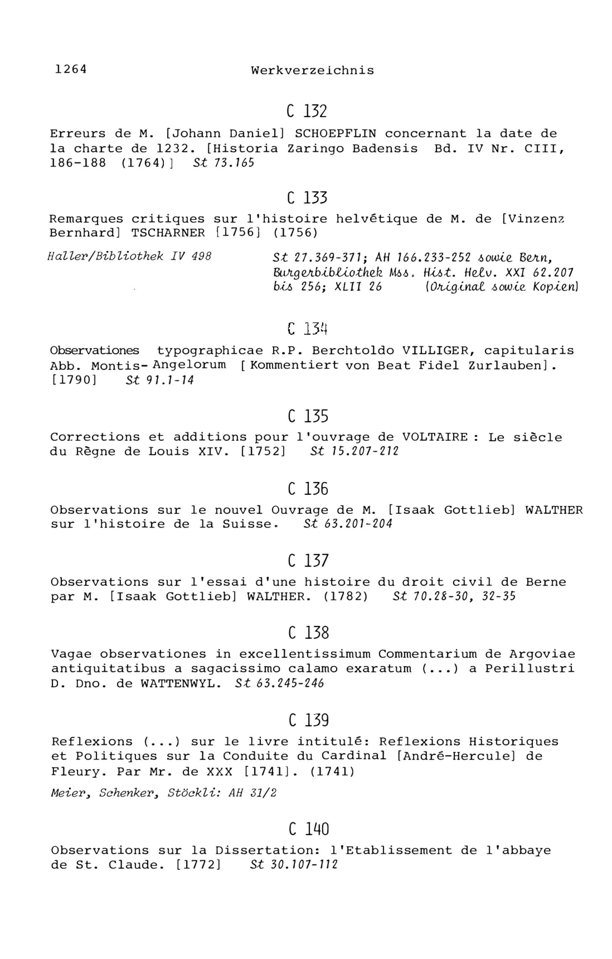 20. Bibliograohie der Arbeiten von Beat Fidel Zurlauben