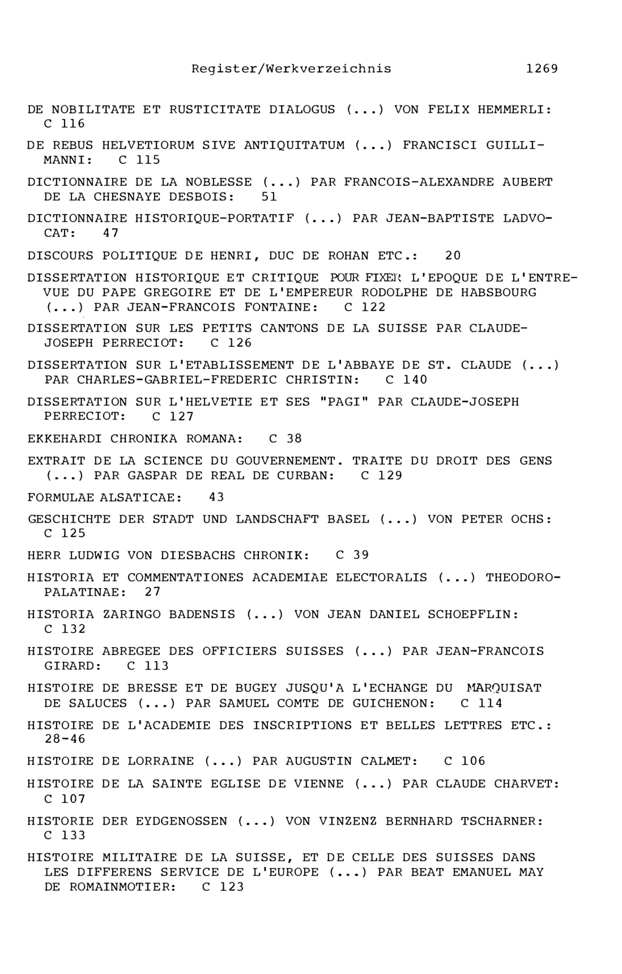 21. Register zu den Arbeiten von Beat Fidel Zurlauben