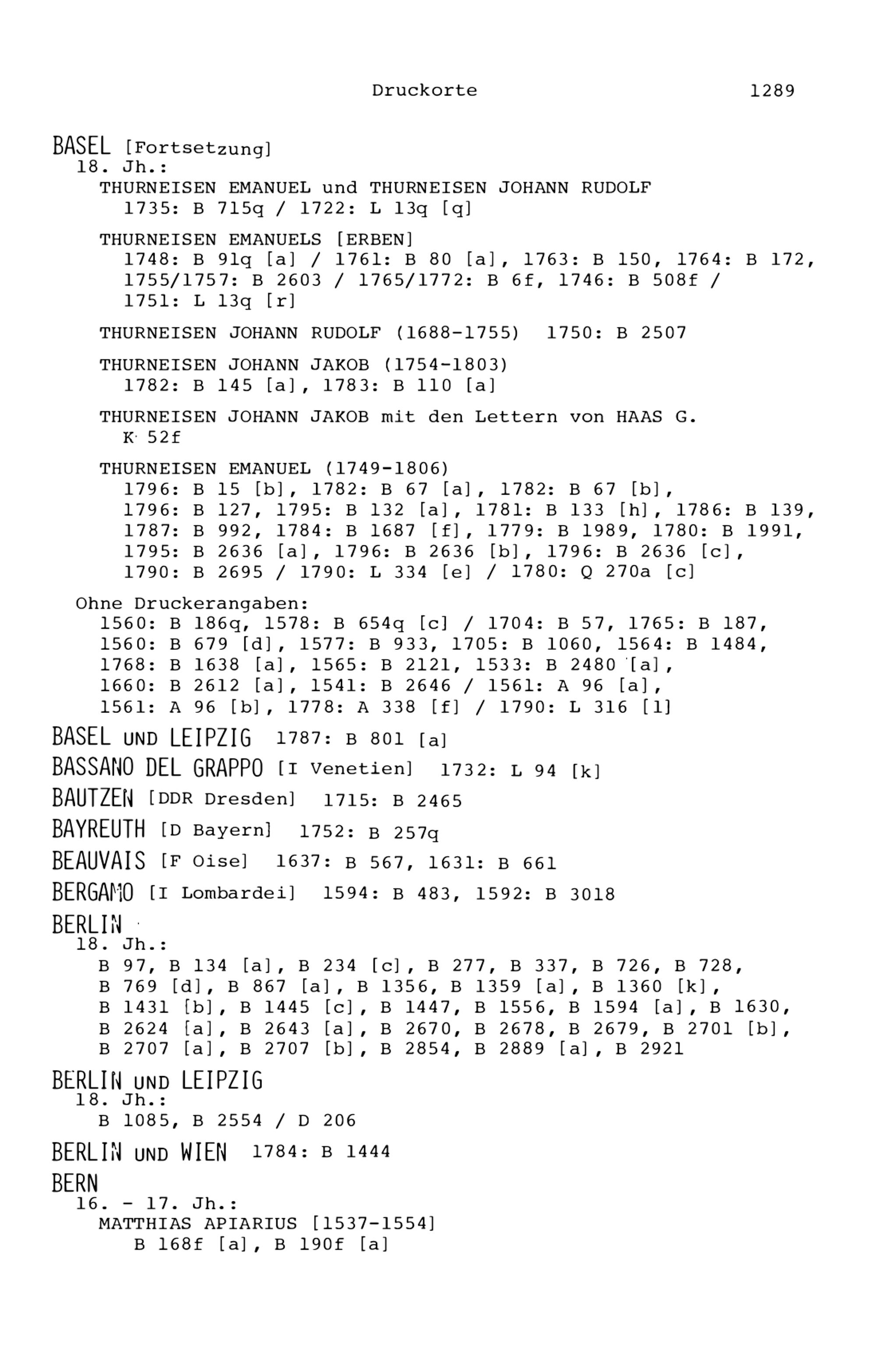 23. Die Druck-resp. Verlagsorte der Bücher in der Zurlaubiana