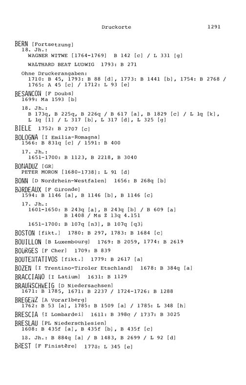 23. Die Druck-resp. Verlagsorte der Bücher in der Zurlaubiana