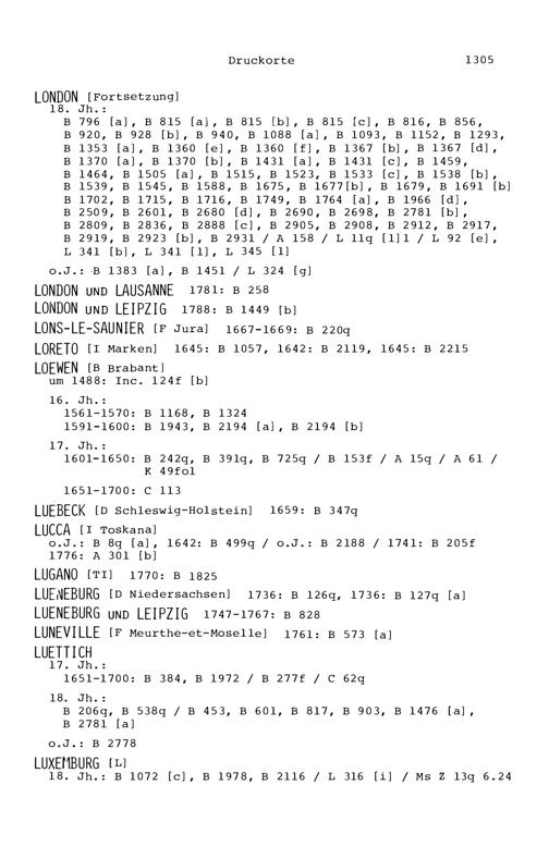 23. Die Druck-resp. Verlagsorte der Bücher in der Zurlaubiana