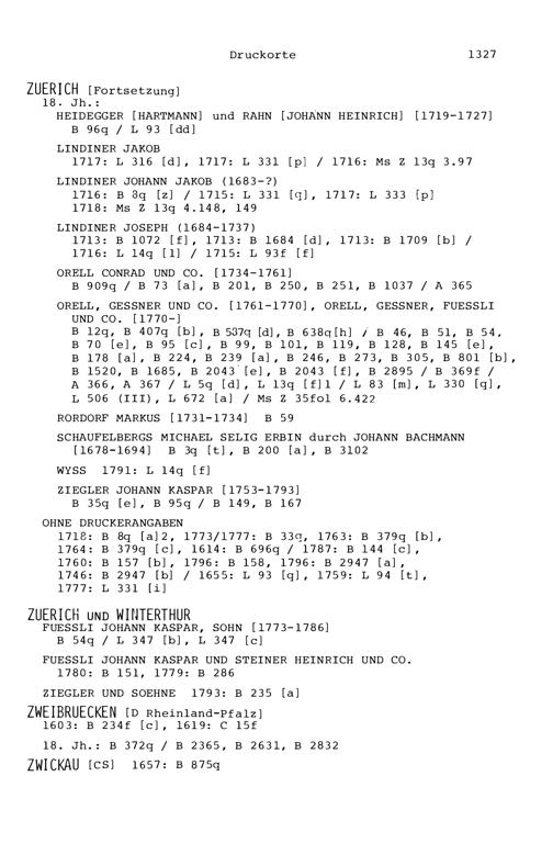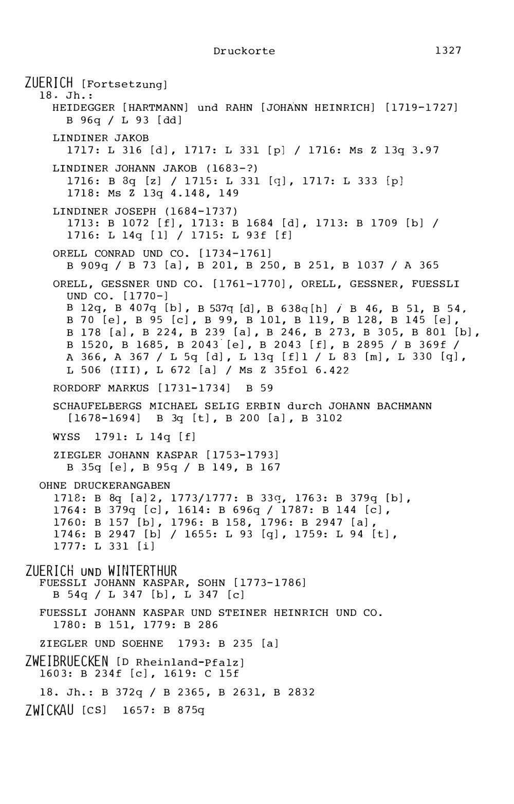 23. Die Druck-resp. Verlagsorte der Bücher in der Zurlaubiana