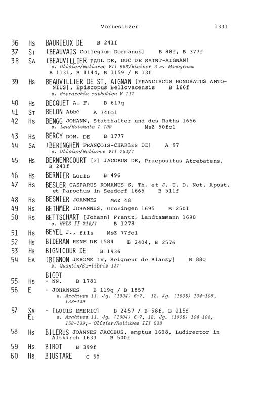 21. Register zu den Arbeiten von Beat Fidel Zurlauben
