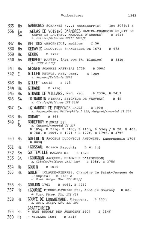 21. Register zu den Arbeiten von Beat Fidel Zurlauben